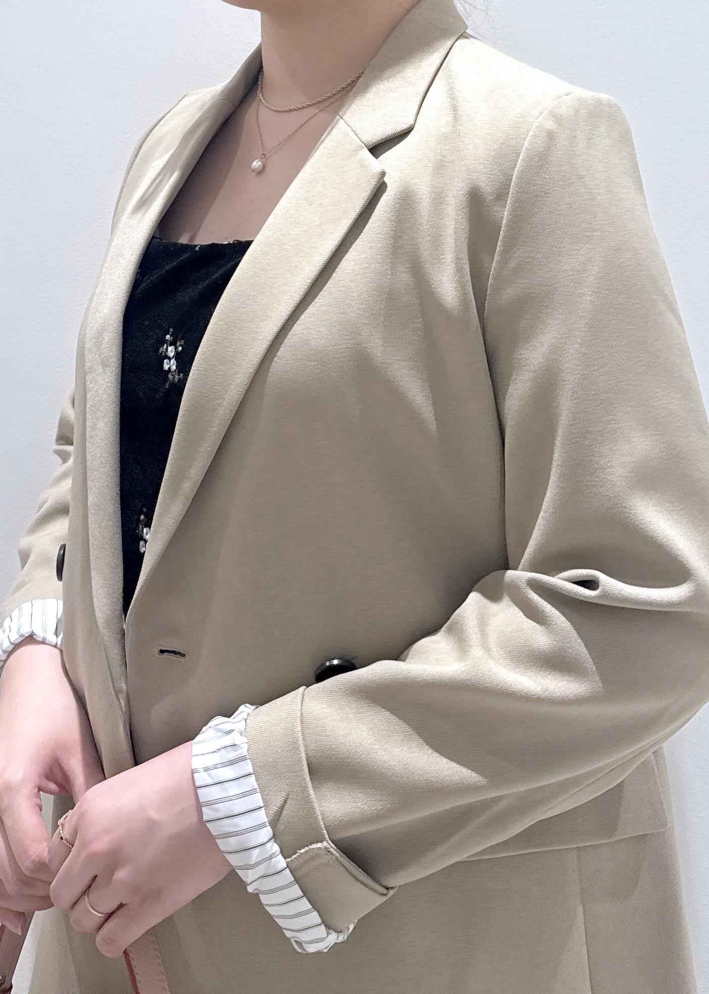 美easyシリーズのリネンライクジャケットではSサイズを着用していましたが、ウーリッシュジャケットではSだと裏地が付いているからかキツく感じ、こちらではMサイズがジャストサイズでした。ブラウスだとSでも良さそうですが、厚みのあるニット素材もこれから着たい方はMサイズをオススメします。またジャケットの素材感では生地が分厚すぎず、身長157cmでお尻が隠れるぐらいの長さで安心しました。 -
