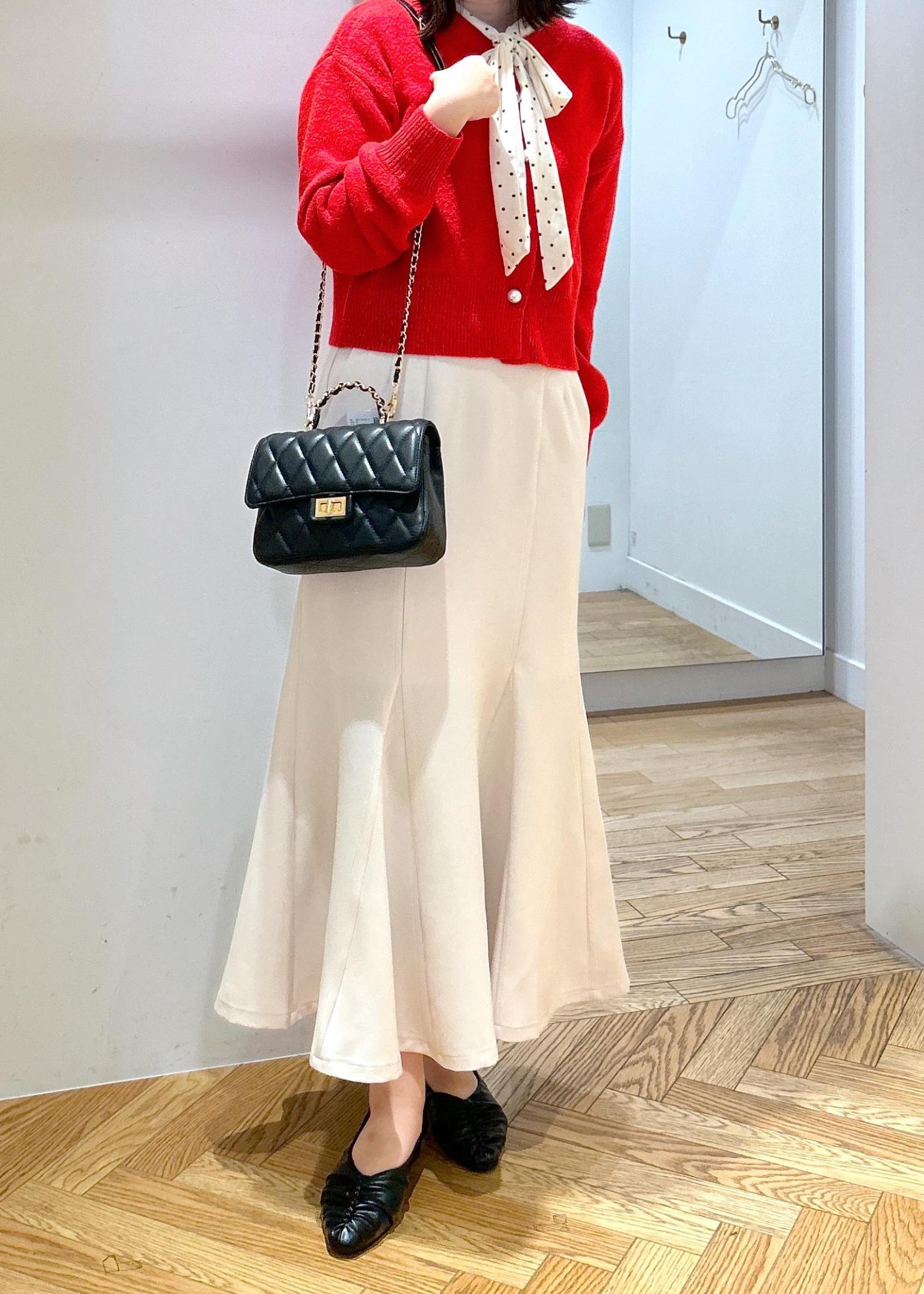 マーメイドスカートとボウタイトップスでフェミニンな雰囲気に♡