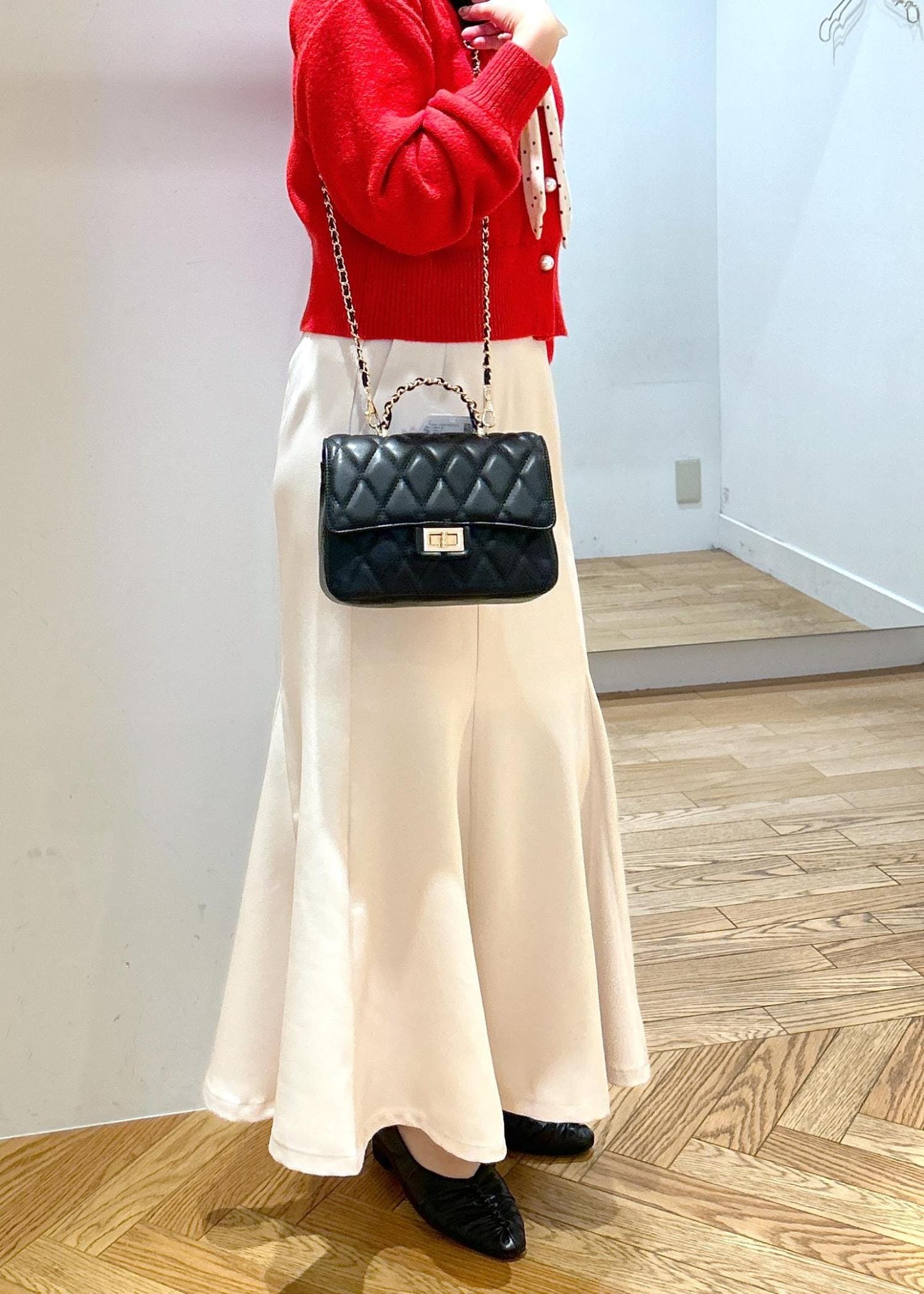 VISチェーンハンドルキルティングショルダーバッグ/2WAY・一部WEB限定カラーブラック / F¥6,919レビューミニマムなサイズ感で合わせやすいです!