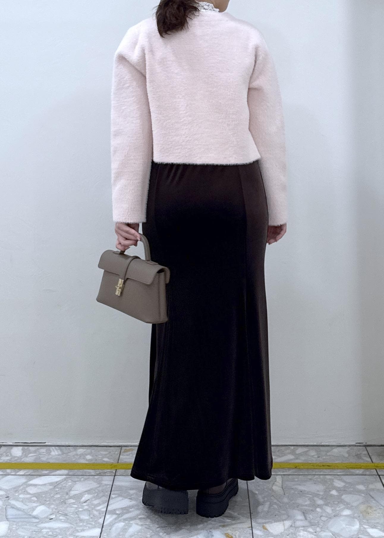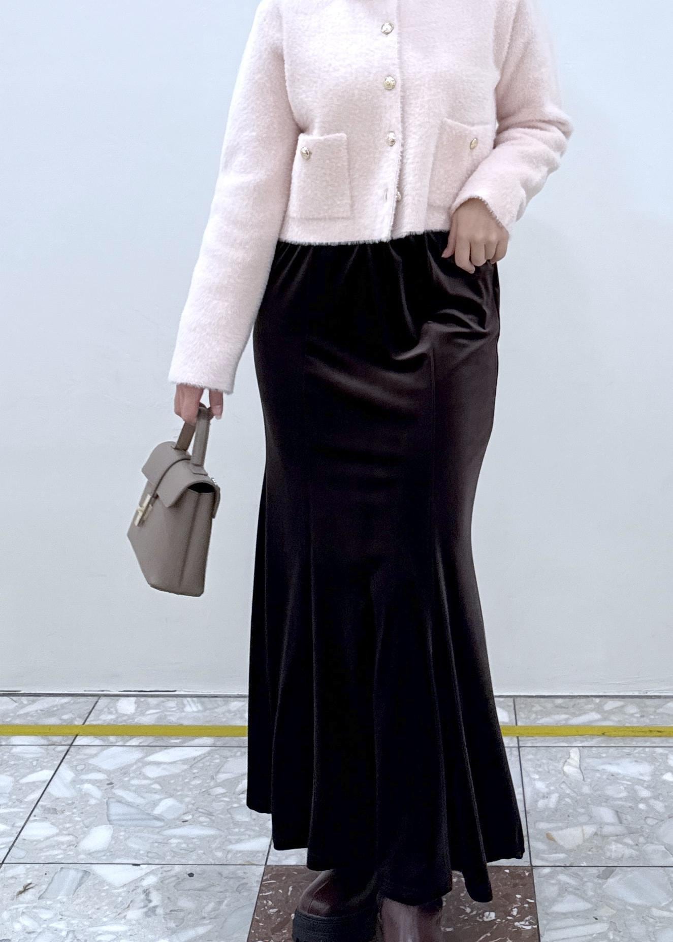 普段腰回りのラインが気になってスカートをあまり履かないのですが、これはベロア素材でラインを拾わず、しかもシルエットがきれい!!