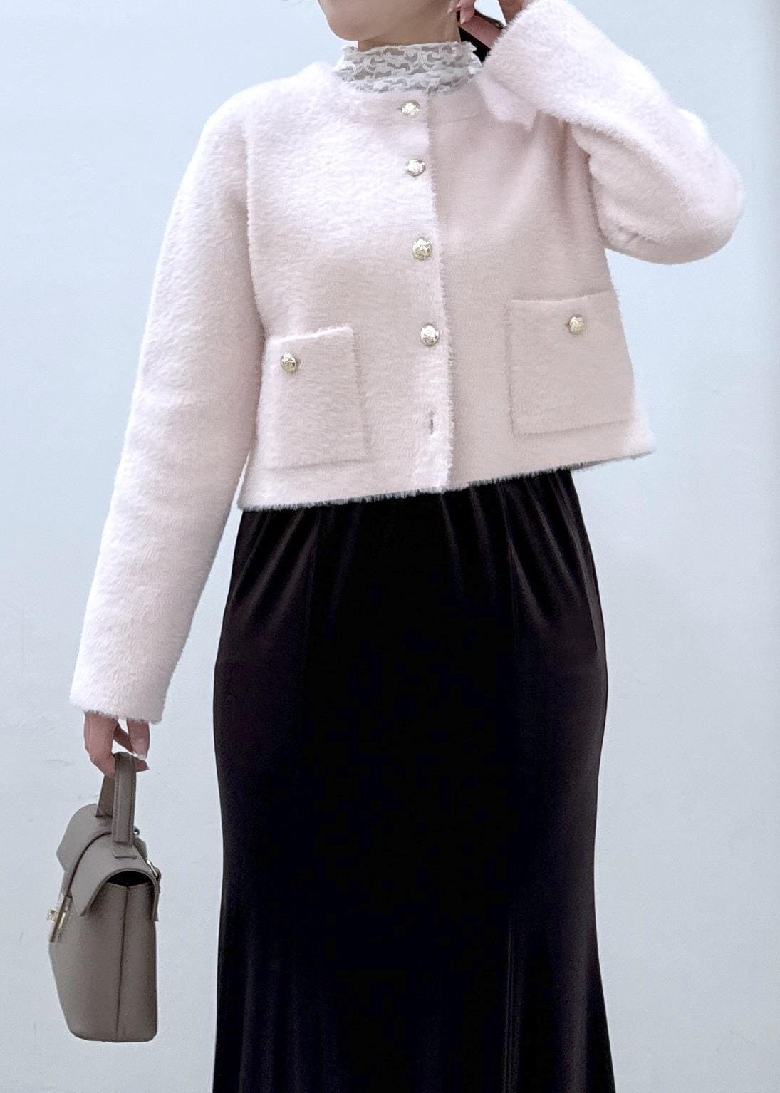 VIS接結ミニフェザーニットジャケットカーディガン/一部WEB限定カラーピンク系 / F¥6,919レビュー毛足の長いフェザーカーディガン!