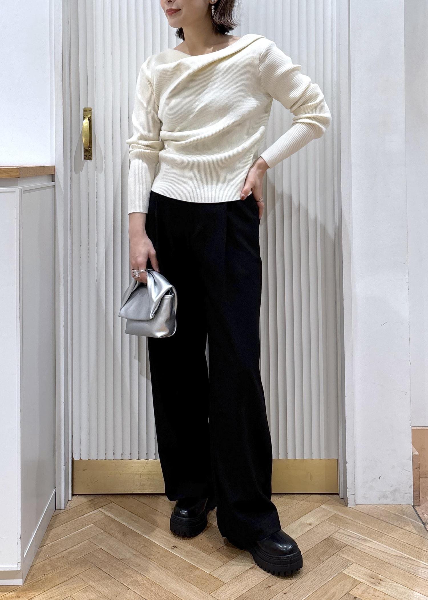 NEW!VIS【美得】もちもちドレープリブニットトップス/イージーケアオフホワイト / F¥4,389レビューとてもシンプルでミニマルなデザインですが、程よい胸開きが女性らしく抜け感のあるニット。身体のラインを拾い過ぎずドレープが華やかに着映えします。着丈は腰下辺りでしっかりインする事も出来ます。