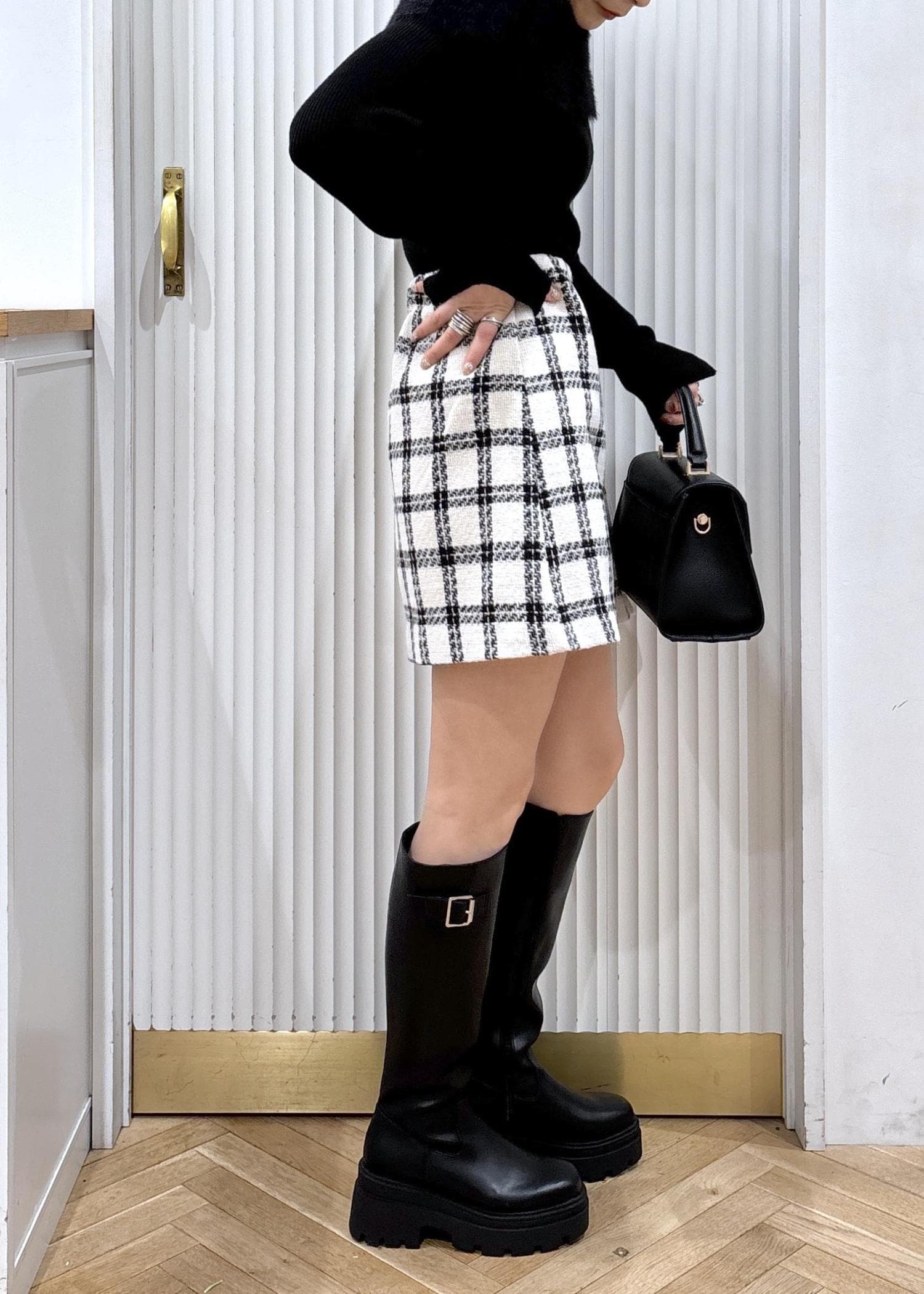 モノトーンで大人ミニスカートスタイル