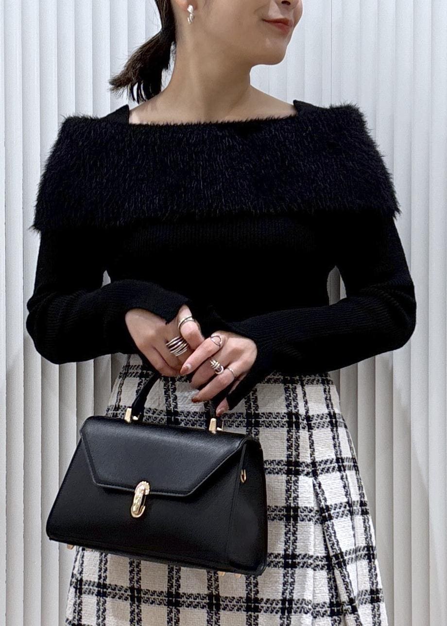 フェザーヤーンオフショルもちもちリブニット/イージーケア
