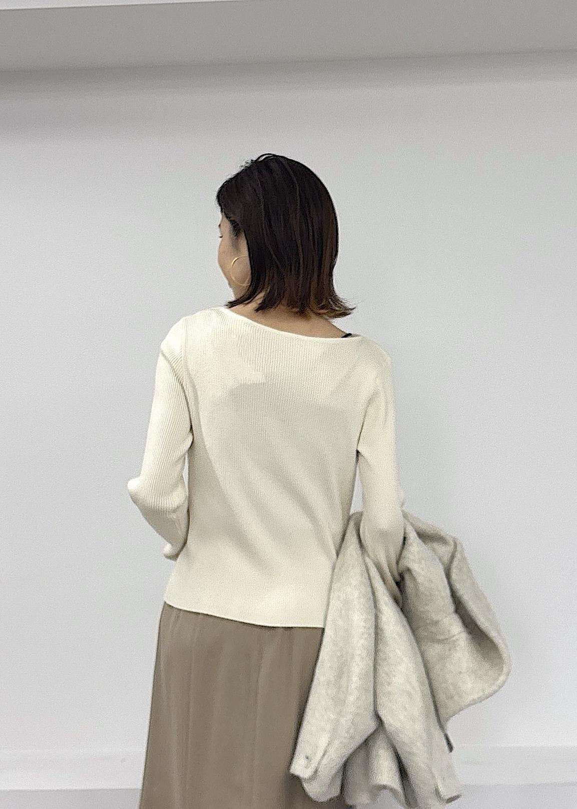 NEW!VIS【美得】もちもちドレープリブニットトップス/イージーケアオフホワイト / F¥4,389レビュー春夏大人気のドレープデザイン、秋冬のニットバージョンで登場です♪緩やかなドレープのシルエットが女性らしく、一枚で大人可愛い印象に◎こちらのニット素材、リブ編みの柔らか素材で伸縮性がありとても着やすいです!全体的にややゆったりめ、着丈は腰がしっかり隠れる長さでした。
