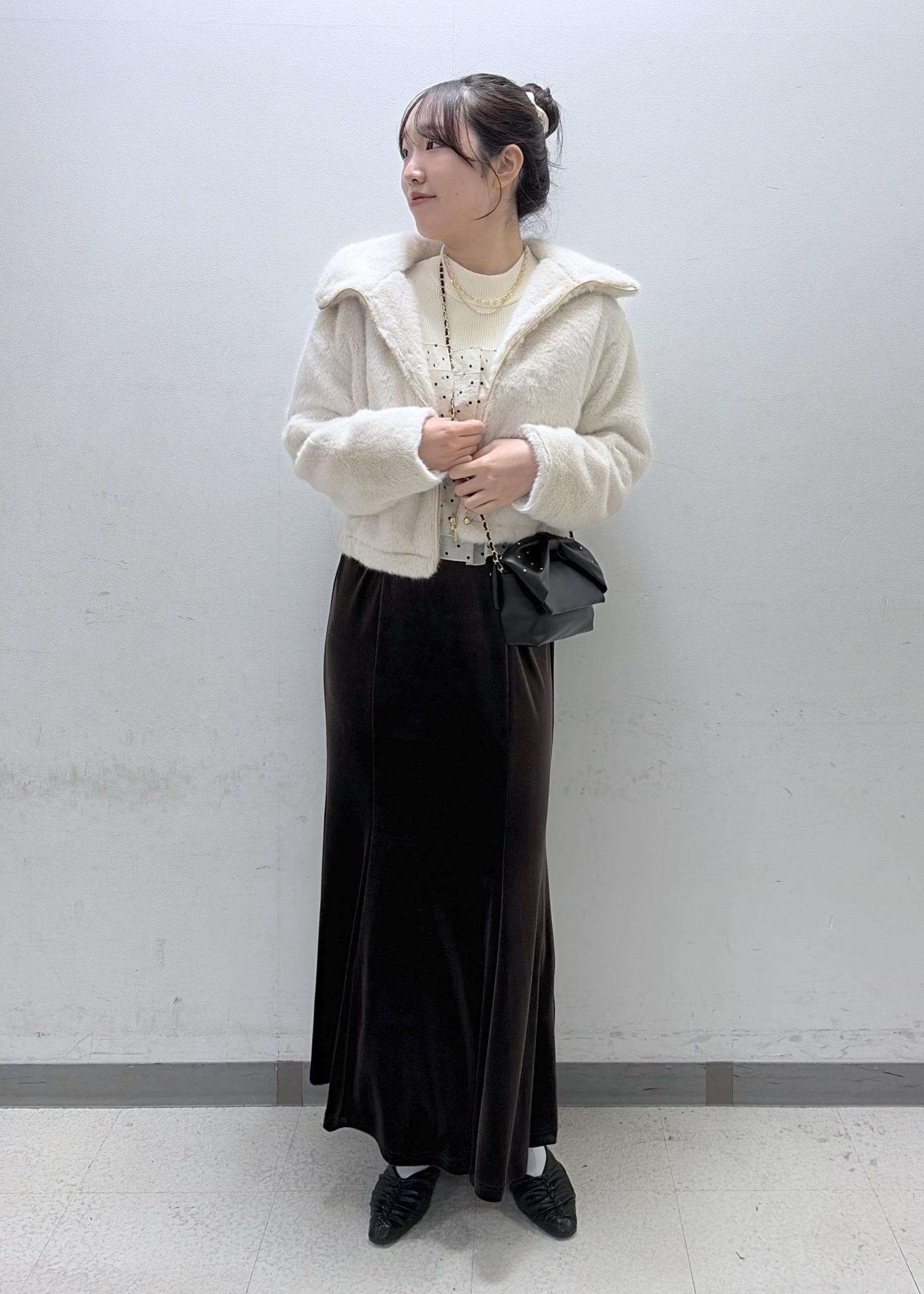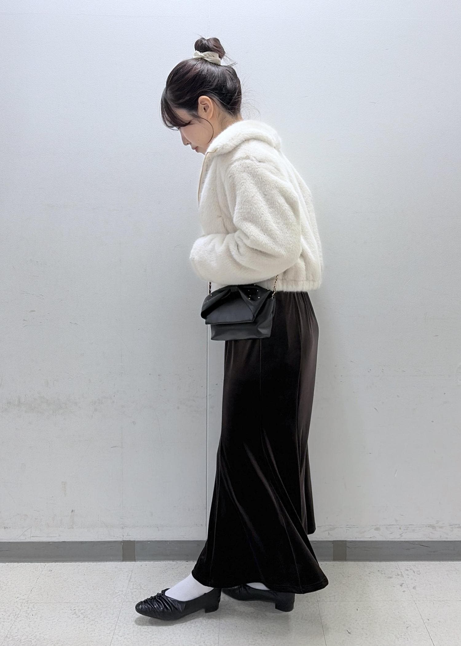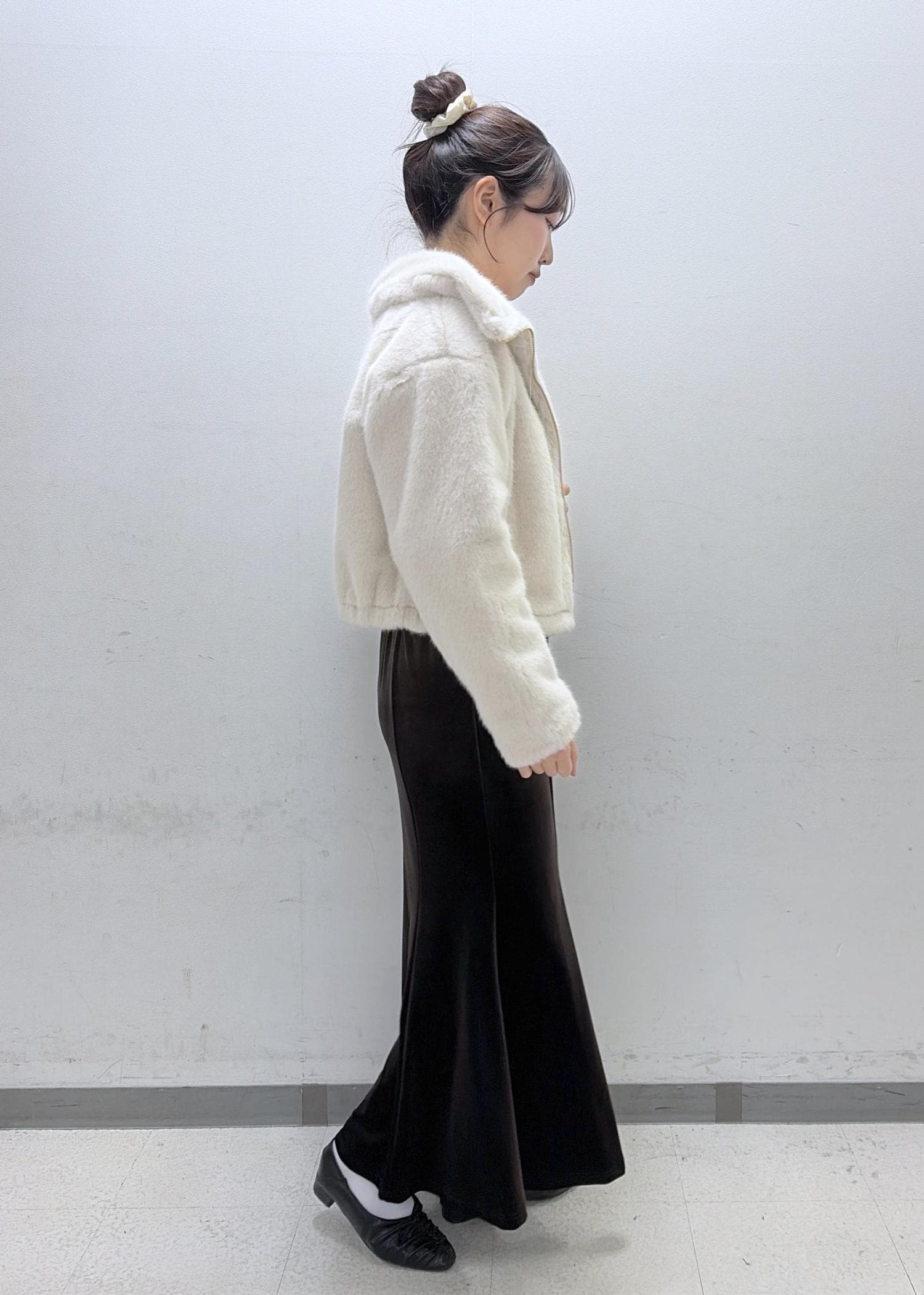 ショート丈ですが裾部分が丸く絞られたシルエットなのでパンツでもスカートでも合わせやすい丈感です!