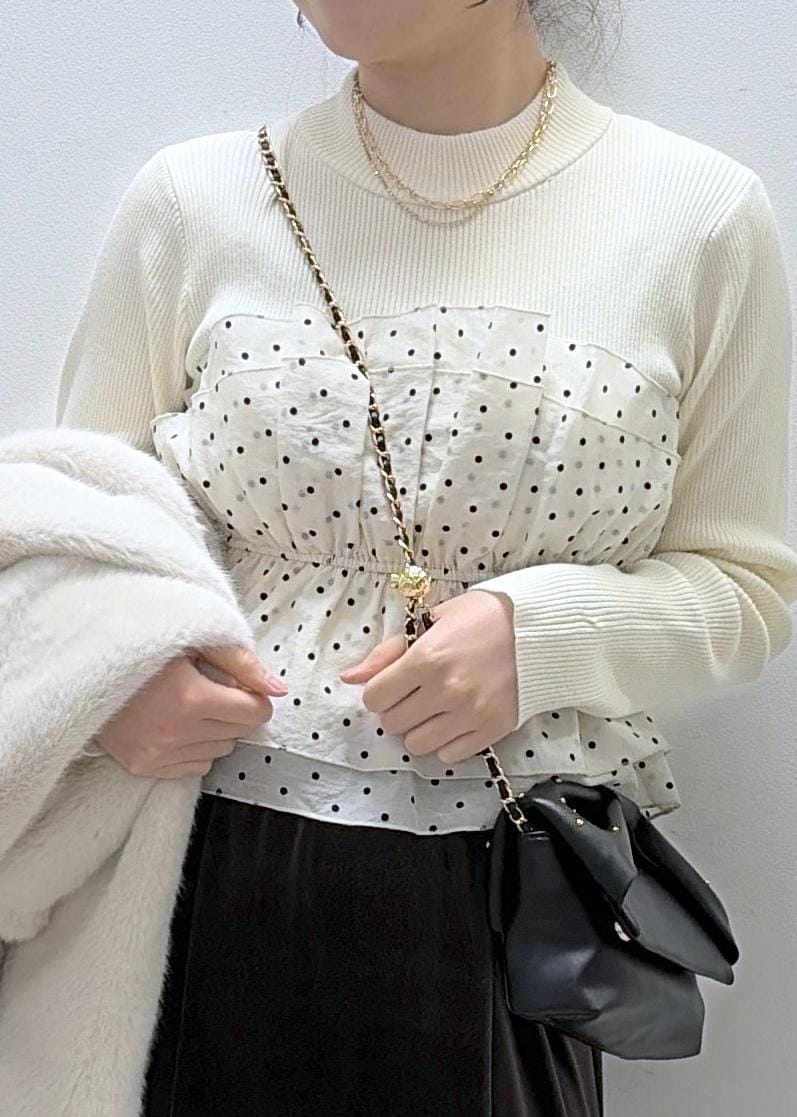 生地は、ニット生地なので、アウターの中のインナーから一枚着でも◎ -