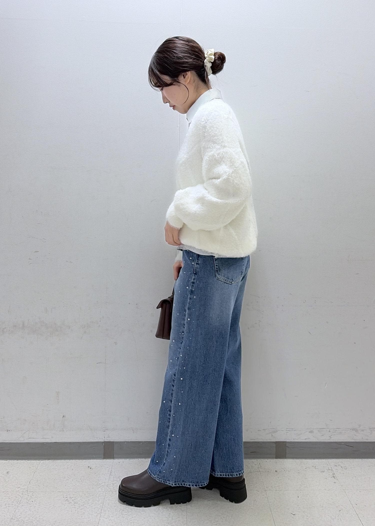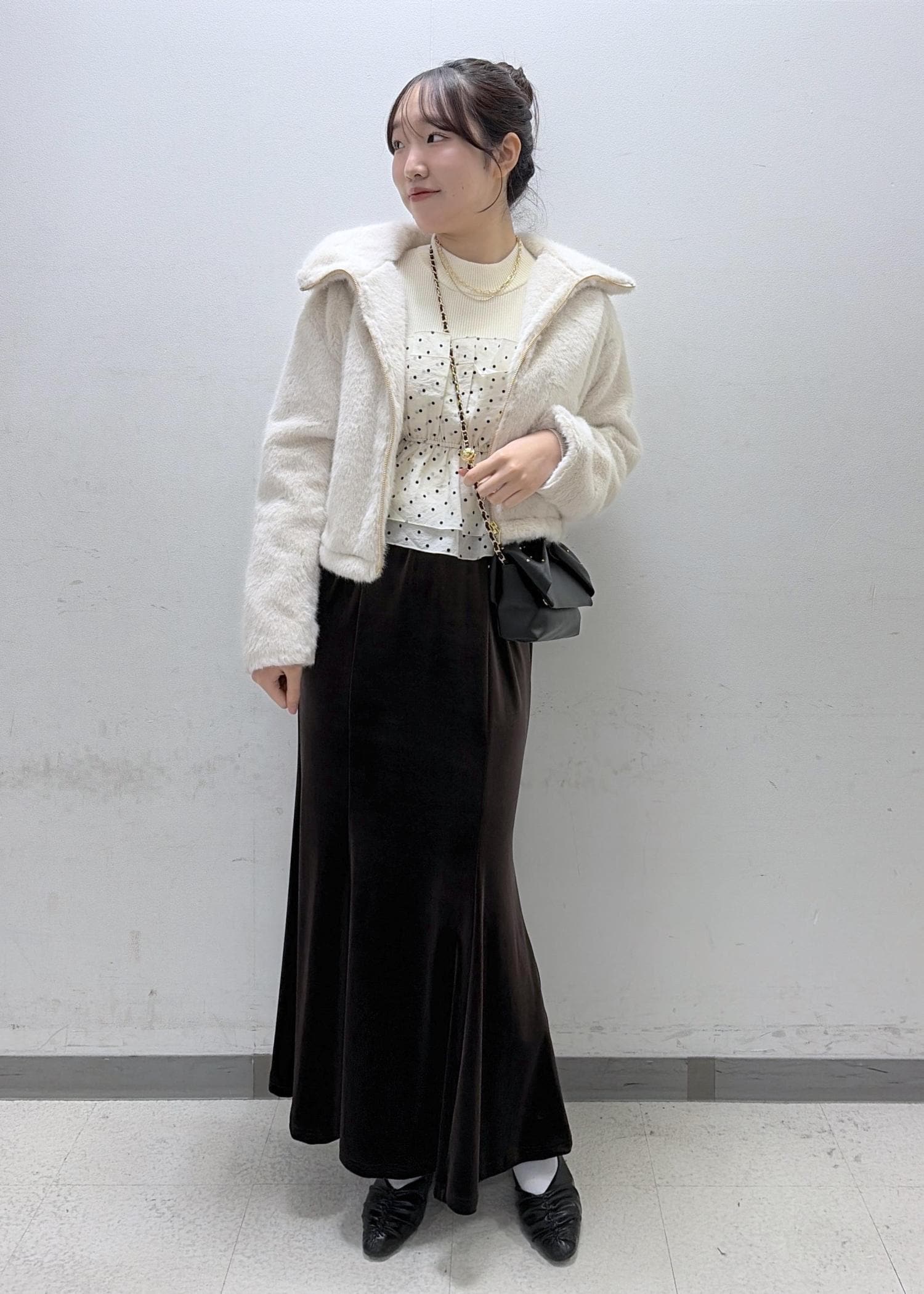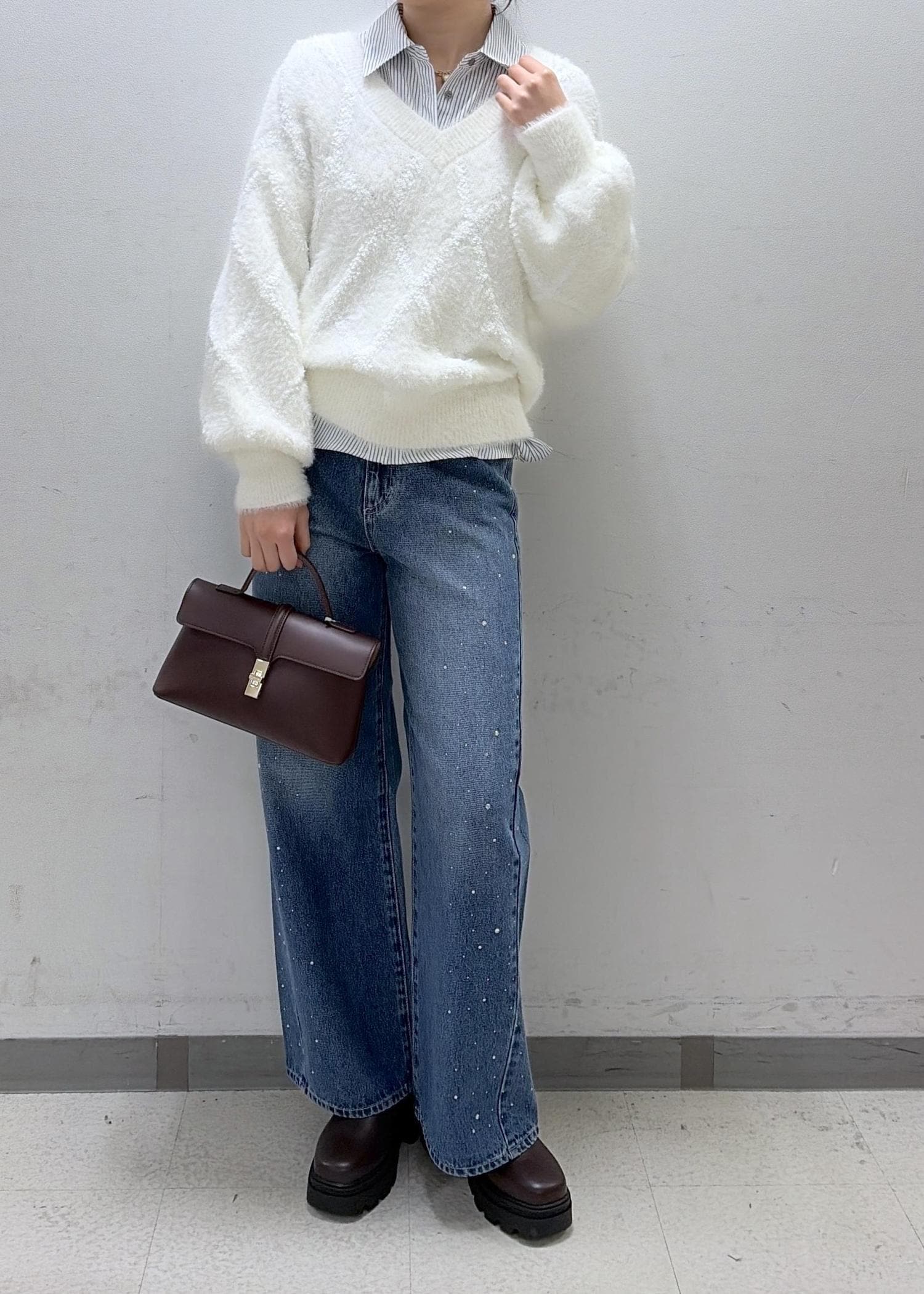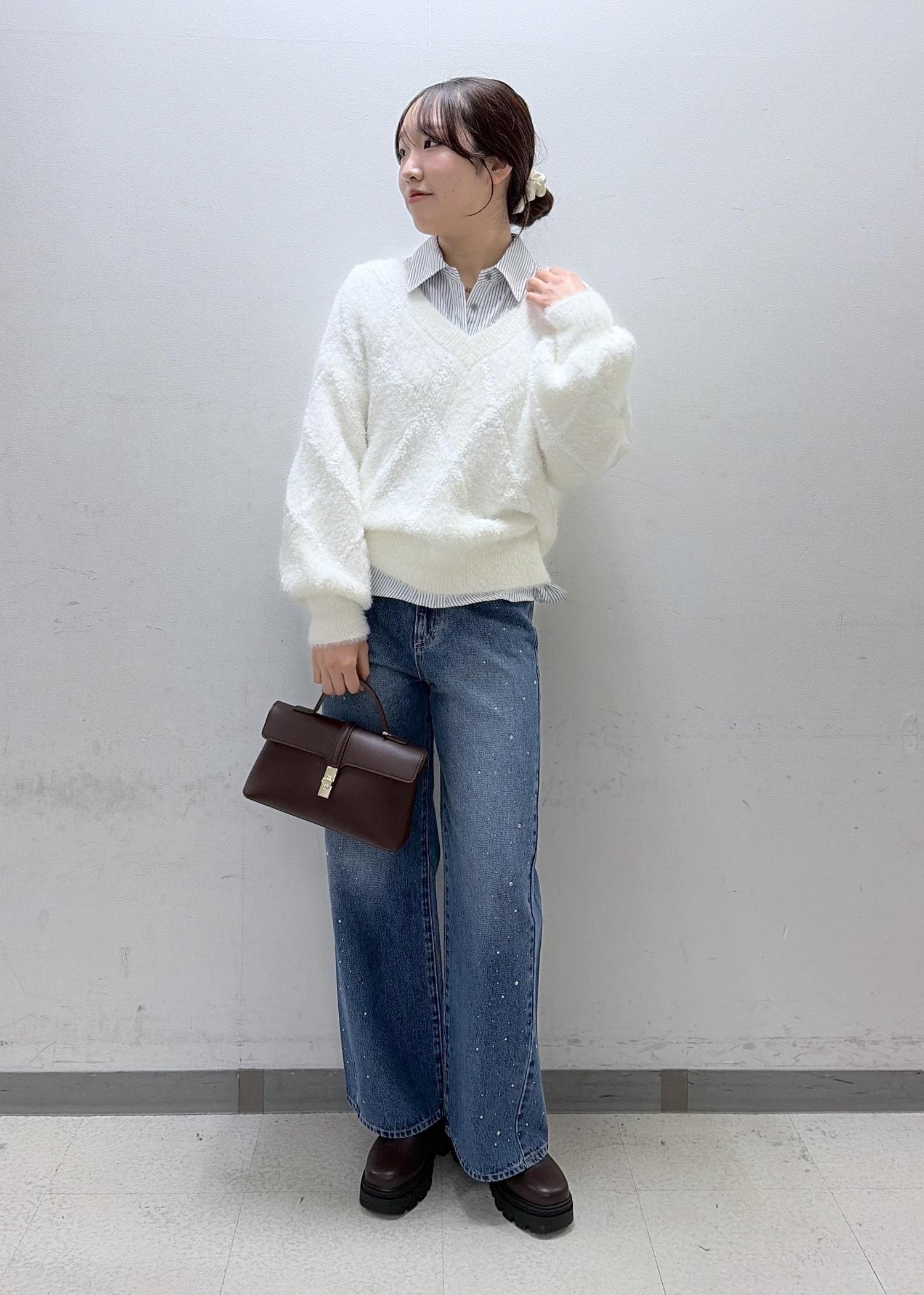 アーガイル柄のホワイトニットを使って冬っぽいコーデを組んでみました- ̫ -♡