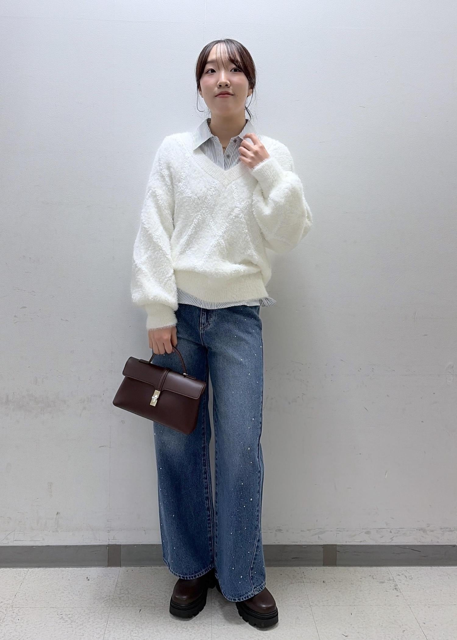 Vネックになっているので、骨ストさん大優勝ニット!!!一枚でも可愛いですが、中にインナー合わせでシャツを挟んでも可愛いです♡