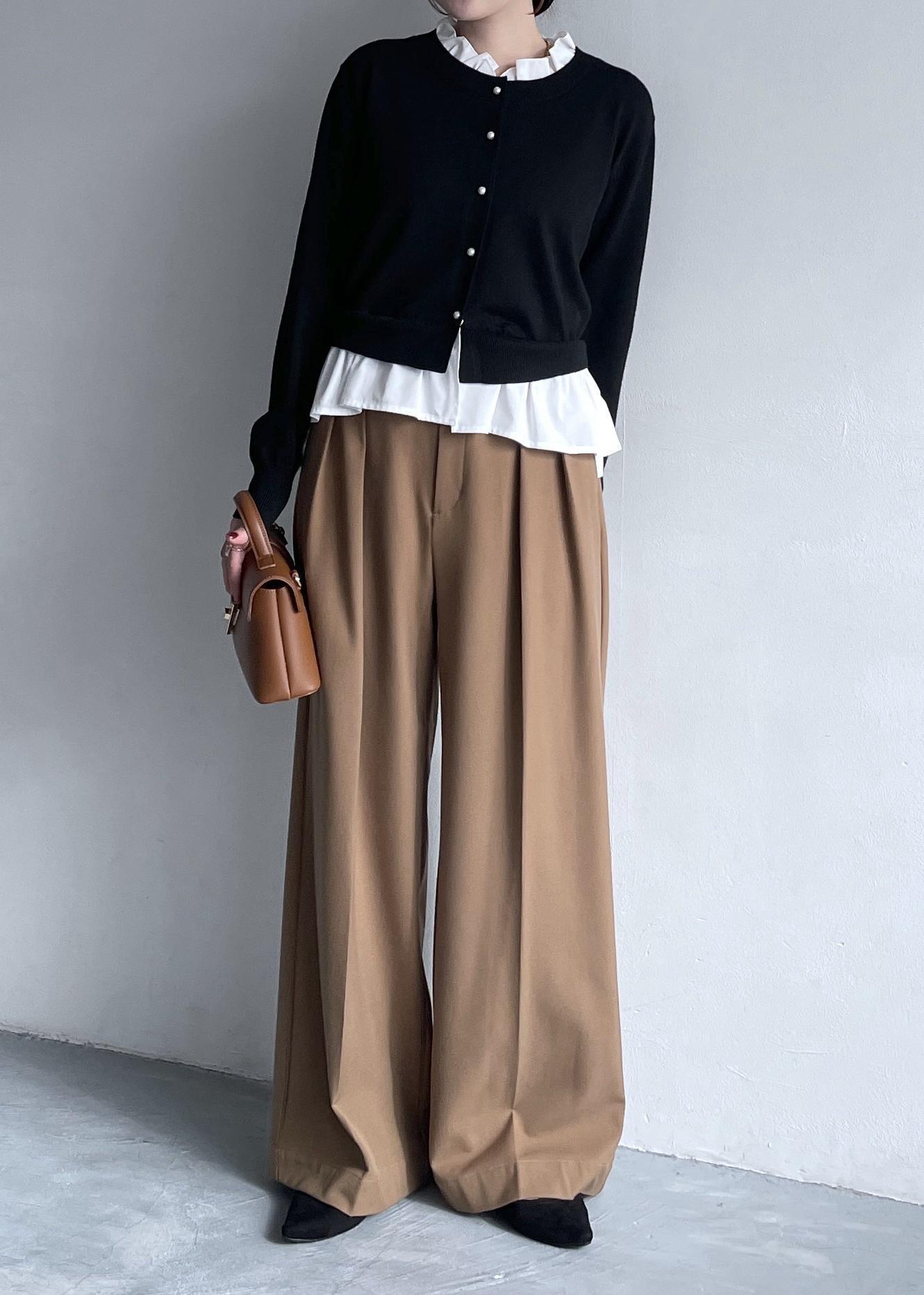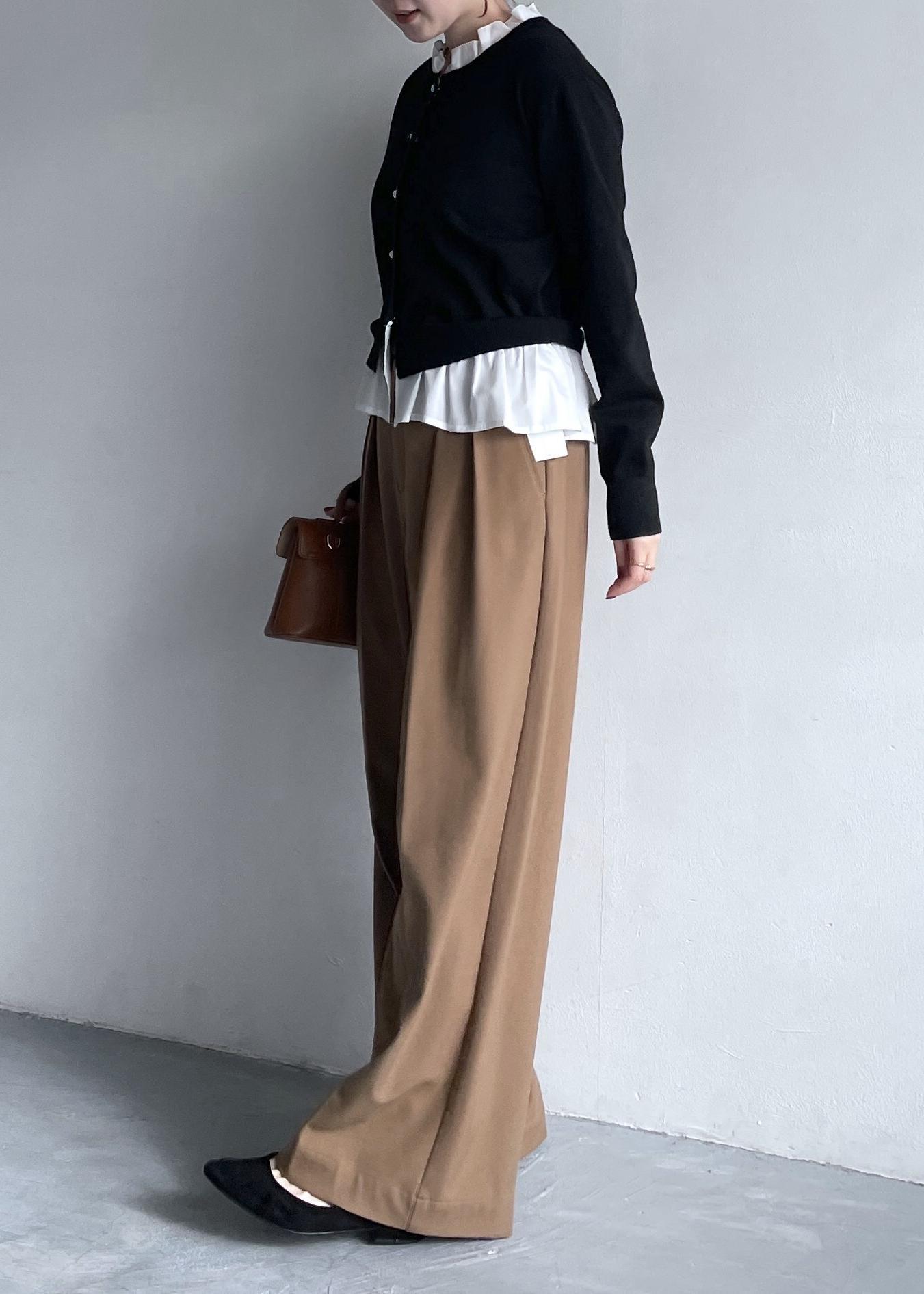VISHot Beautyツータックワイドパンツ/イージーケアキャメル / M¥6,589レビュー秋冬人気のシリーズ♡裏起毛で程よい厚みがありますが、センタープレスでスッキリと脚長効果も期待できます◎ワイドシルエットと腰回りは2タックなので体型カバーも叶います!