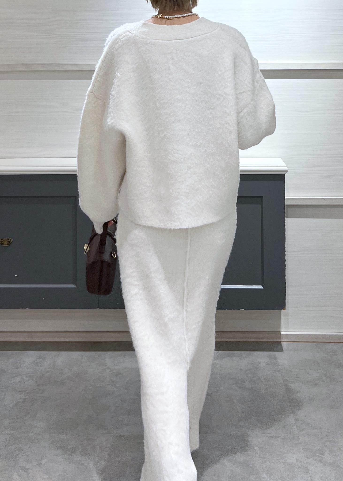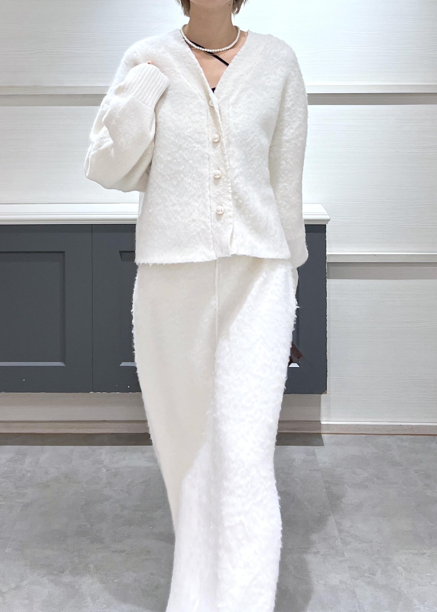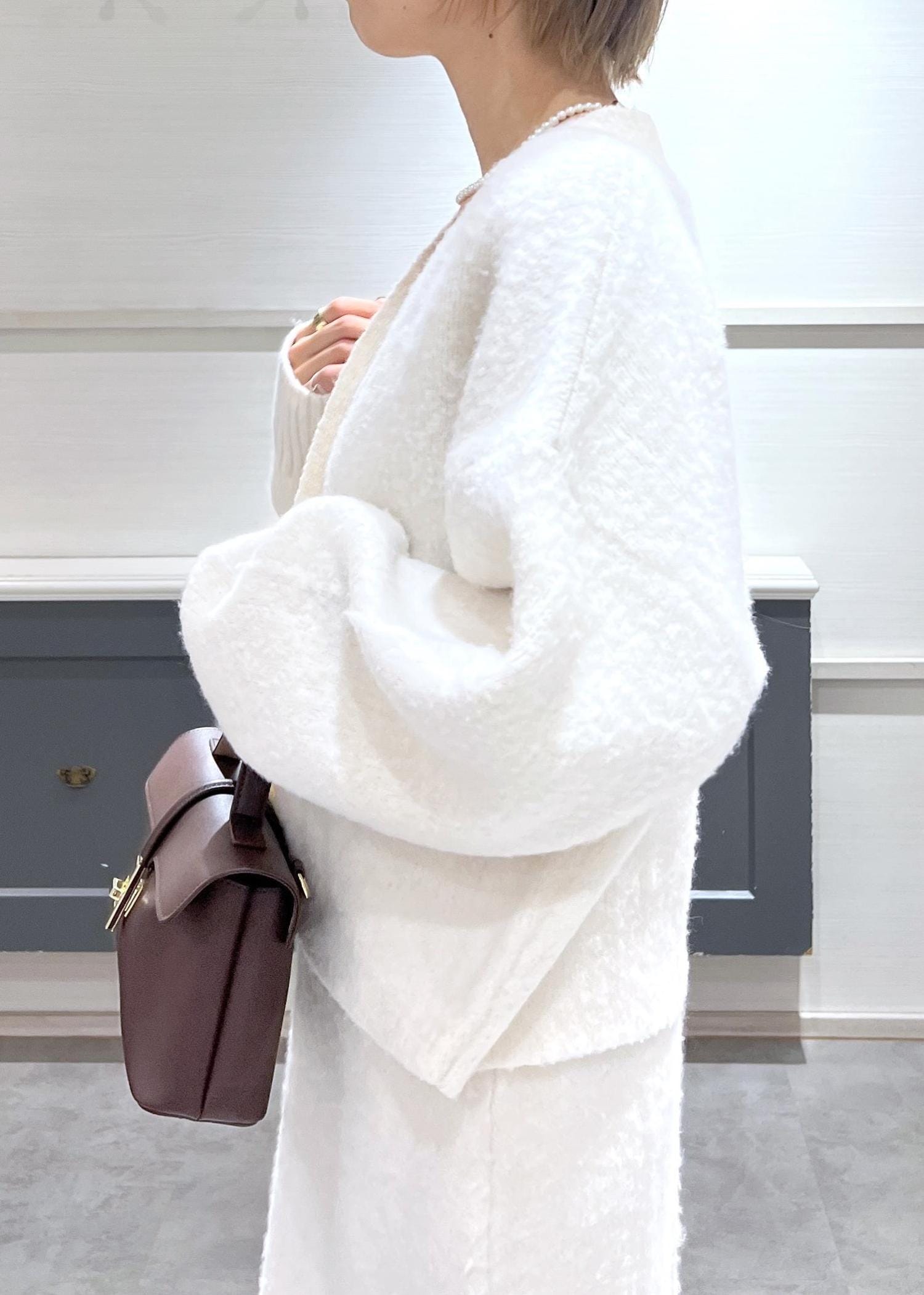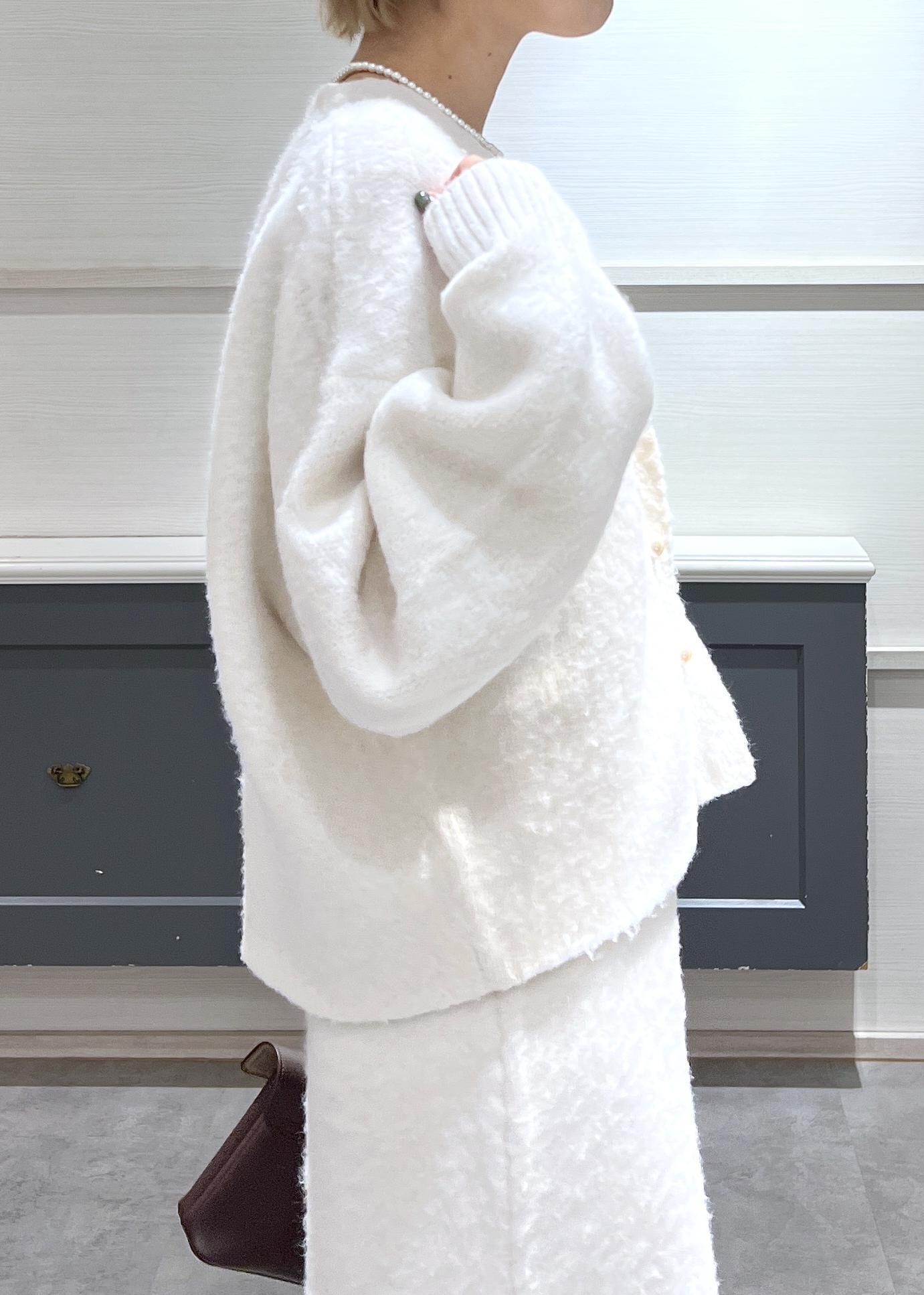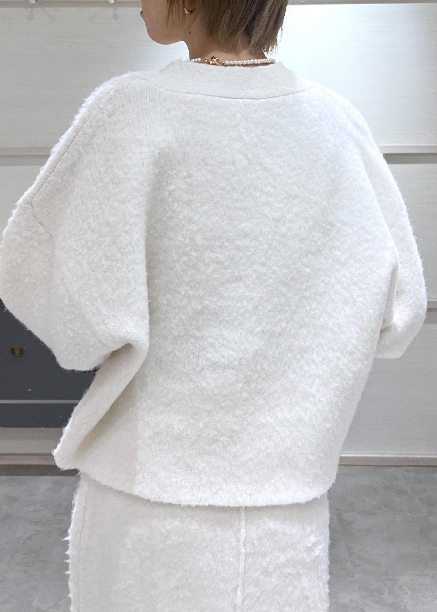 VISチェックアソートシャギーニットカーディガン/セットアップ対応オフホワイト / F¥6,589レビュー柔らかいシャギーの素材で、少し厚めの程よい厚さです。