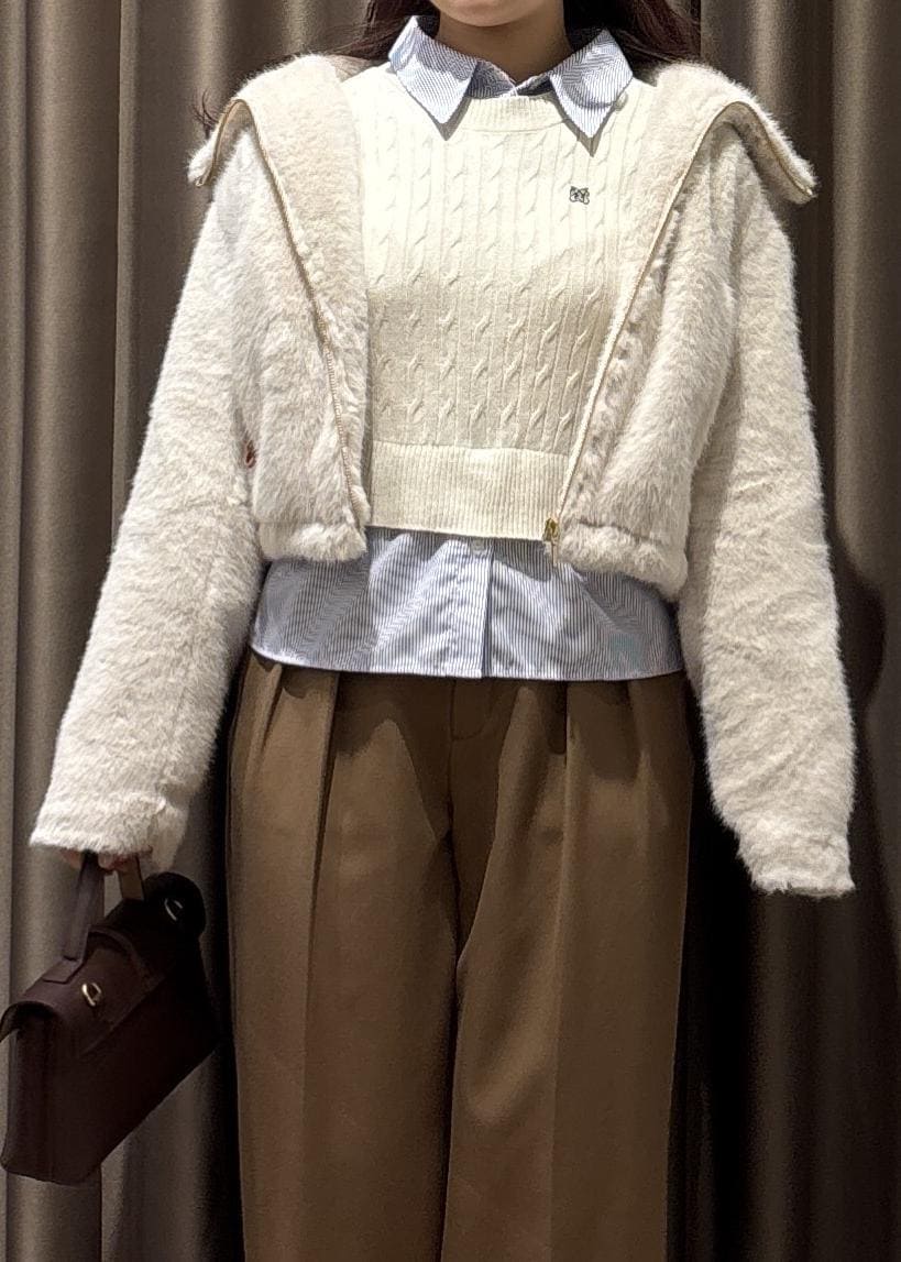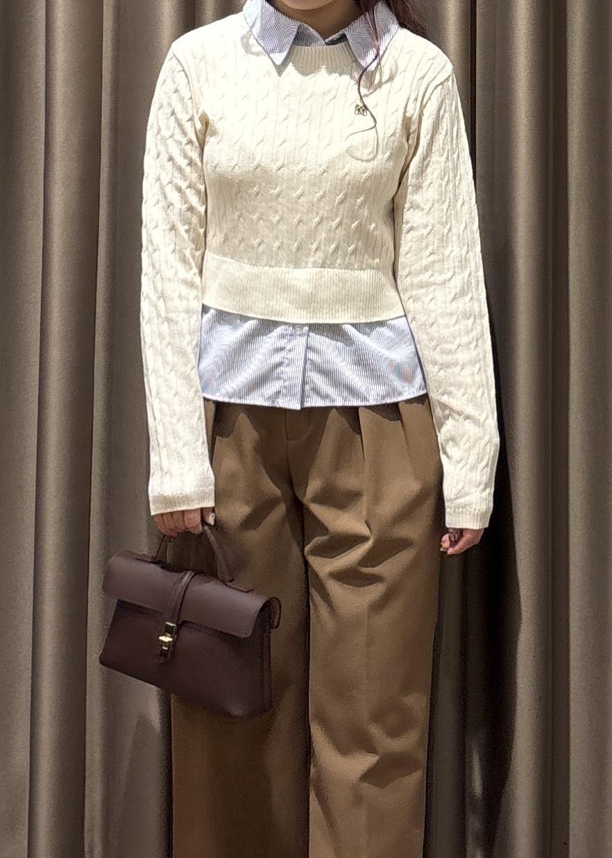 NEW!VIS【美得】ハイゲージケーブシャツドッキングプルオーバーキナリ / F¥5,489レビュー1枚で着映えするドッキングトップス♡
