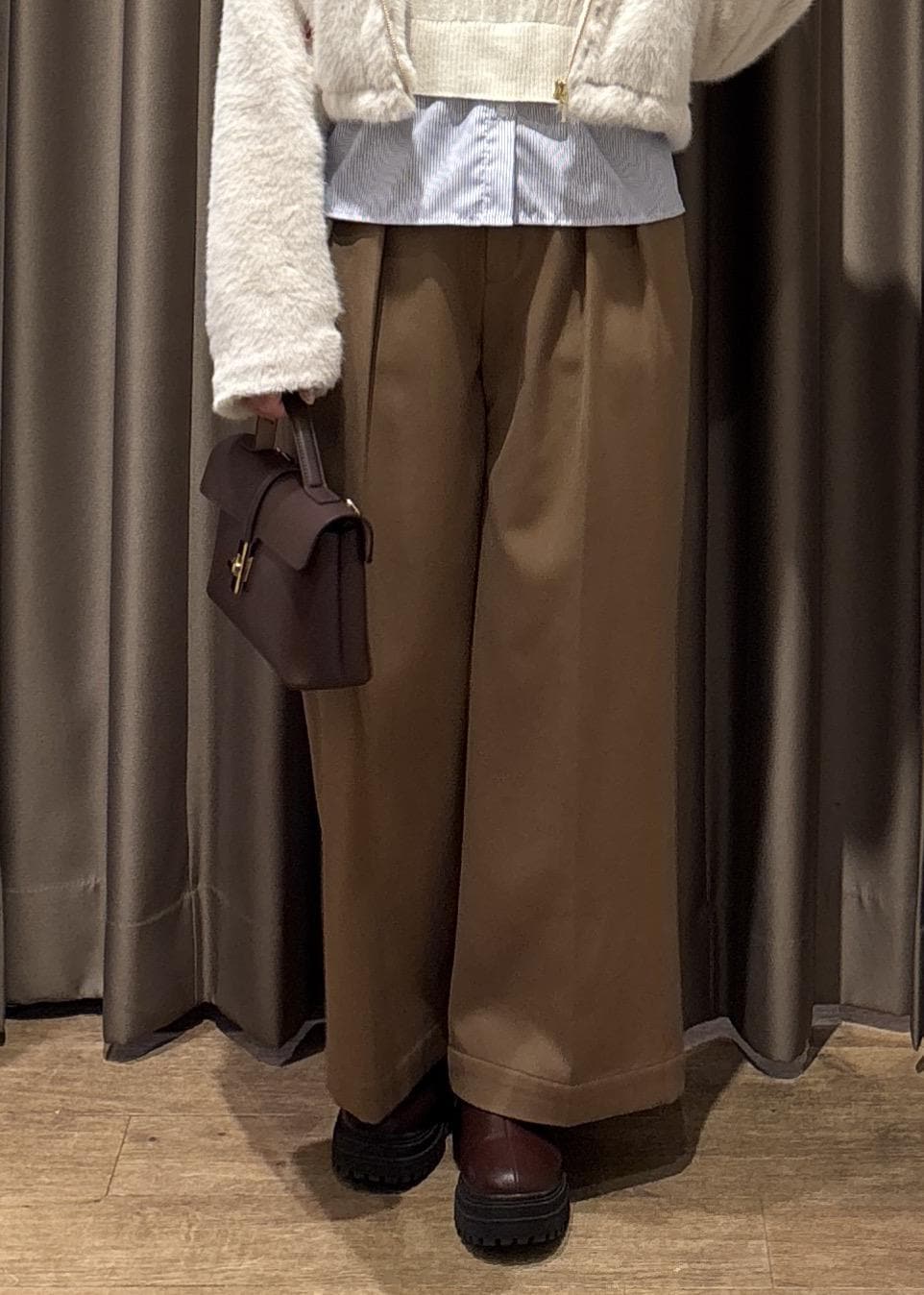 ワイドパンツですが、センタープレスでスッキリ足長効果も◎ -