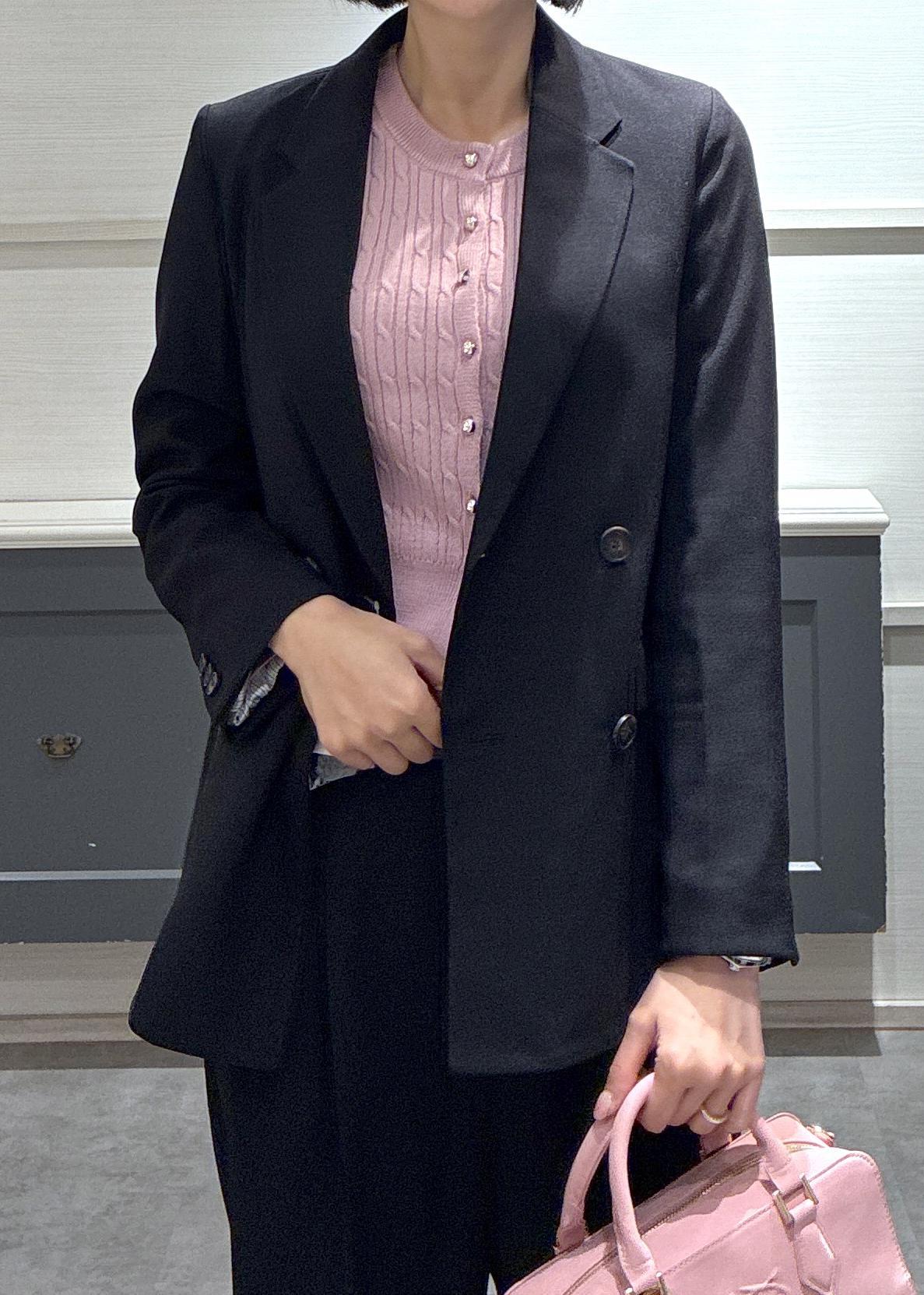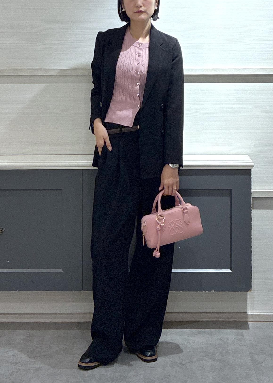 ジャケットのインアイテムはついついブラウスを選びがちですが、ニットカーディガンもキレイめに使えるのでオススメです♪