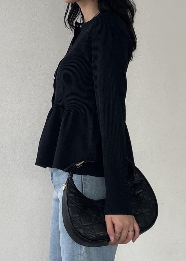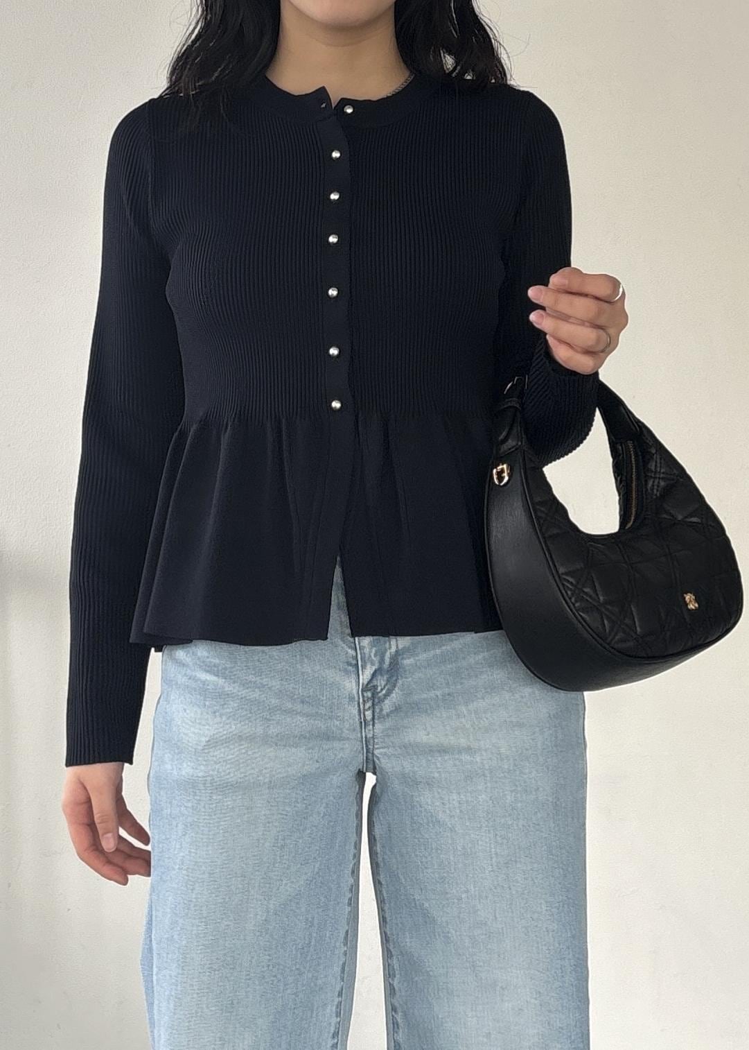 NEW! 予約VISペプラムニットカーディガン/イージーケアネイビー / F¥5,929レビューペプラムシルエットが一枚で映えるカーディガン。