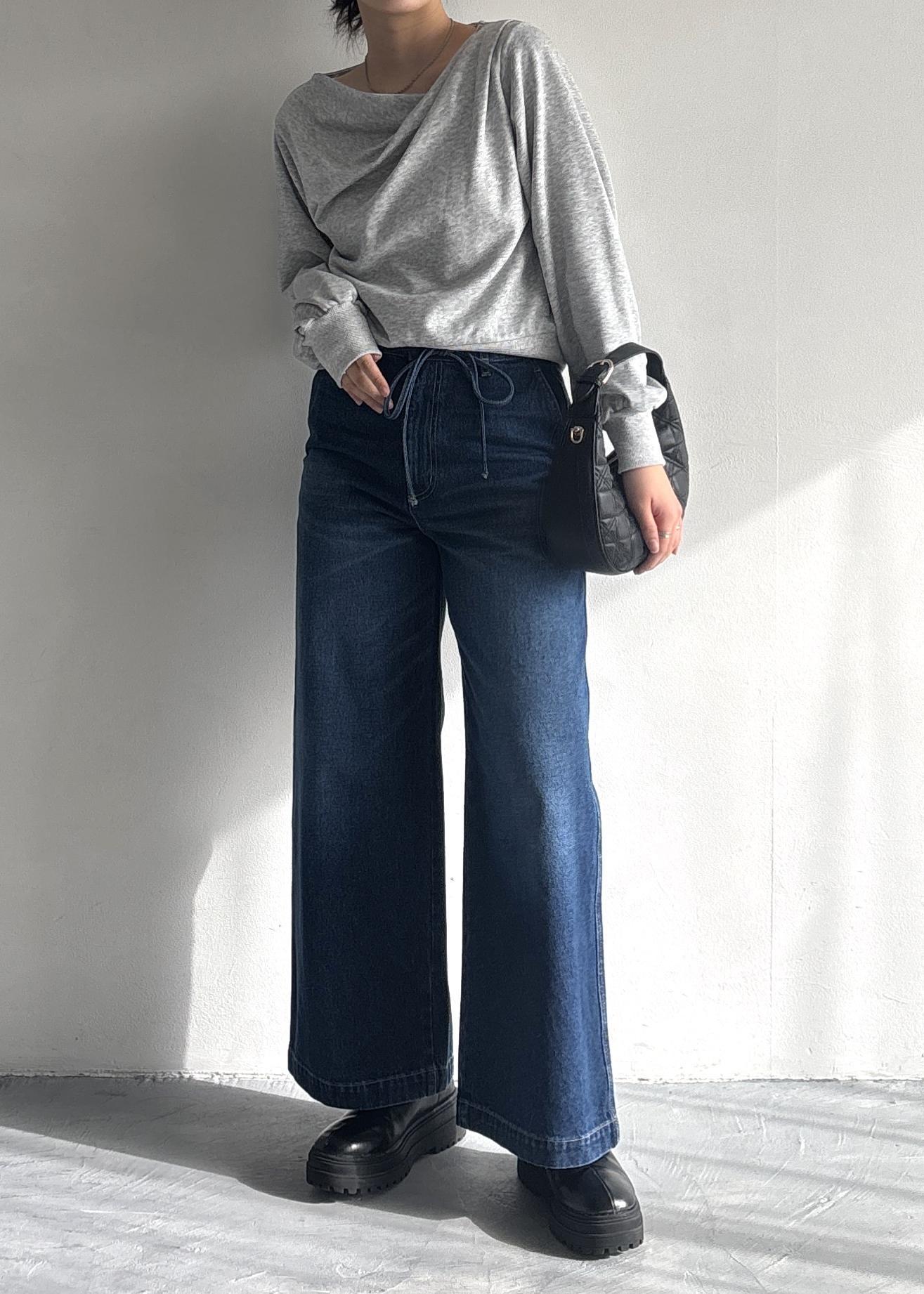 ラフな印象のスウェットですが、ドレープデザインなのでカジュアルになりすぎないのが嬉しいです。
