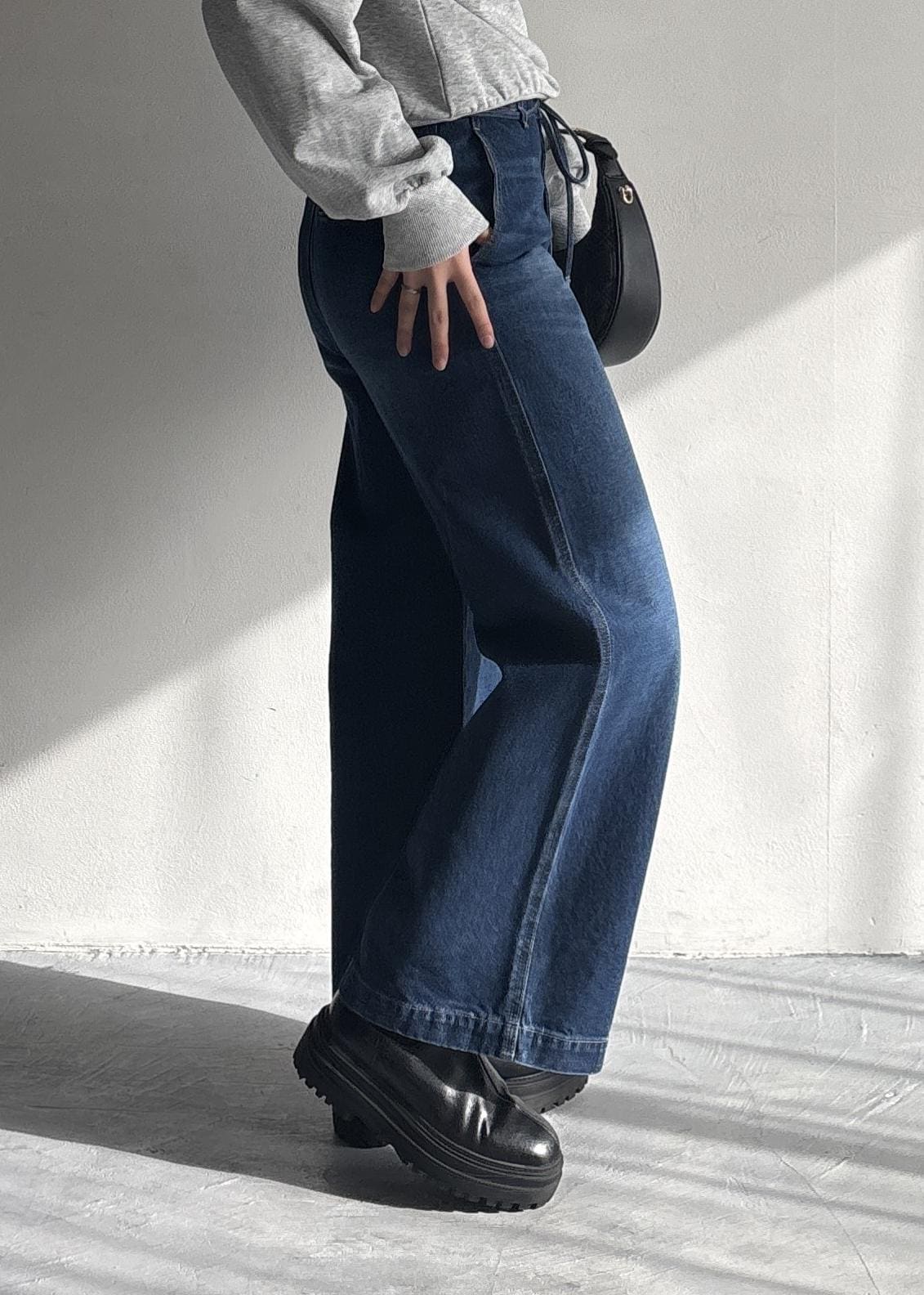 NEW! 予約VISワイドシルエットベルト付きデニムブルー / M¥8,899レビュー165cmでMサイズ着用、くるぶし上あたりの丈感です。