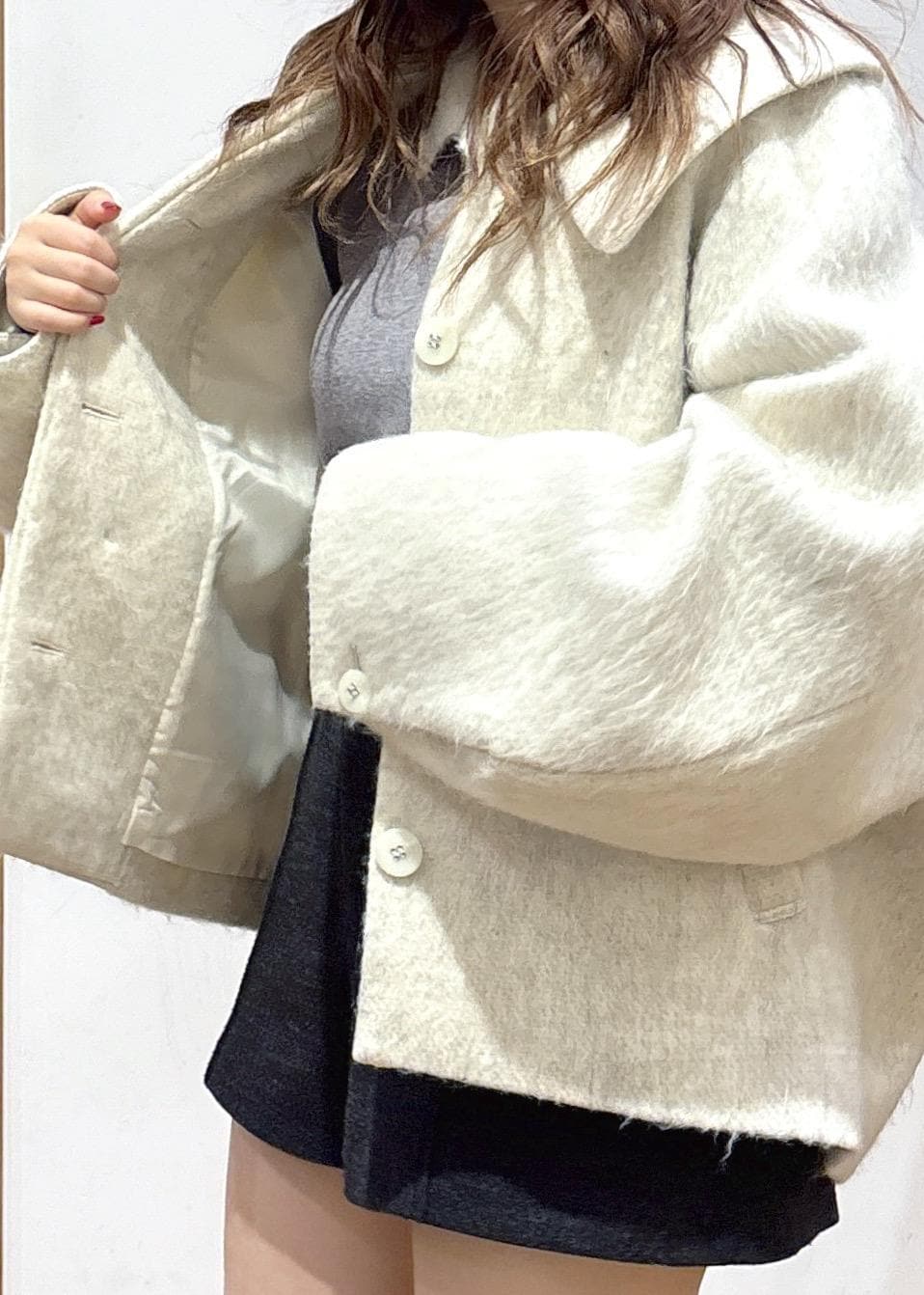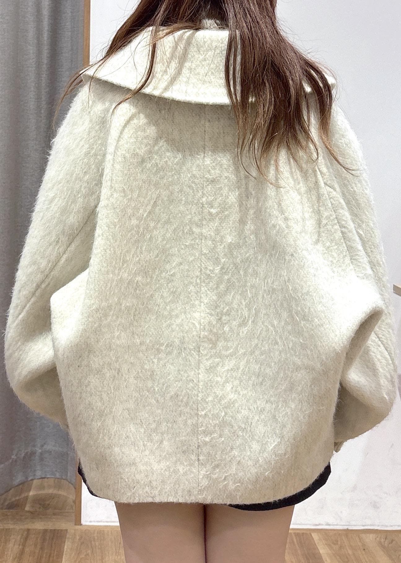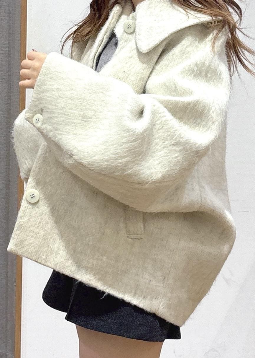 VIS【アウター総選挙1位】ビッグカラーモモンガシャギーショートコートオフホワイト / S¥10,989レビュー【着用例】