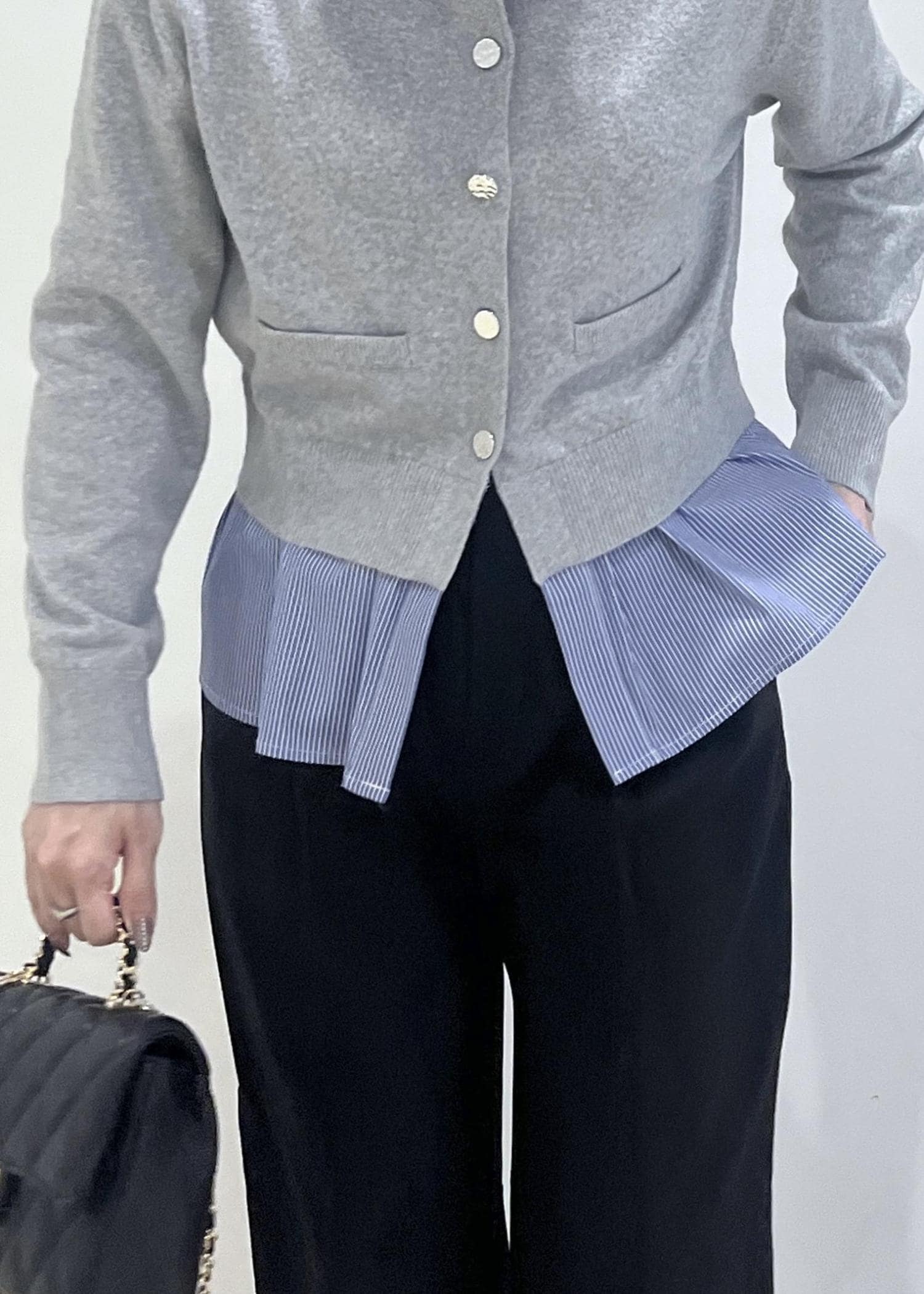 シャツレイヤード風メタルボタンカーディガン