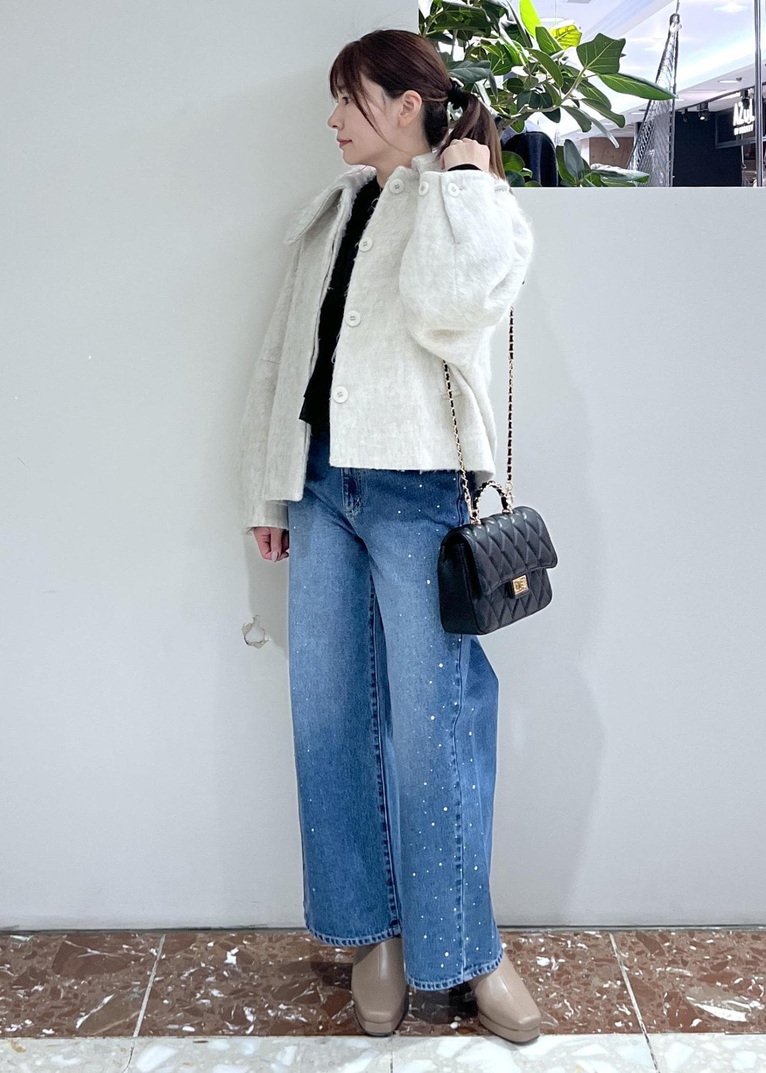 大きめなエリとシャギーの素材がマッチして可愛いらしいコートです。丈はやや長めのショート丈なので甘くなりすぎず、通勤通学、休日カジュアルなどオールマイティに着こなせます◎
