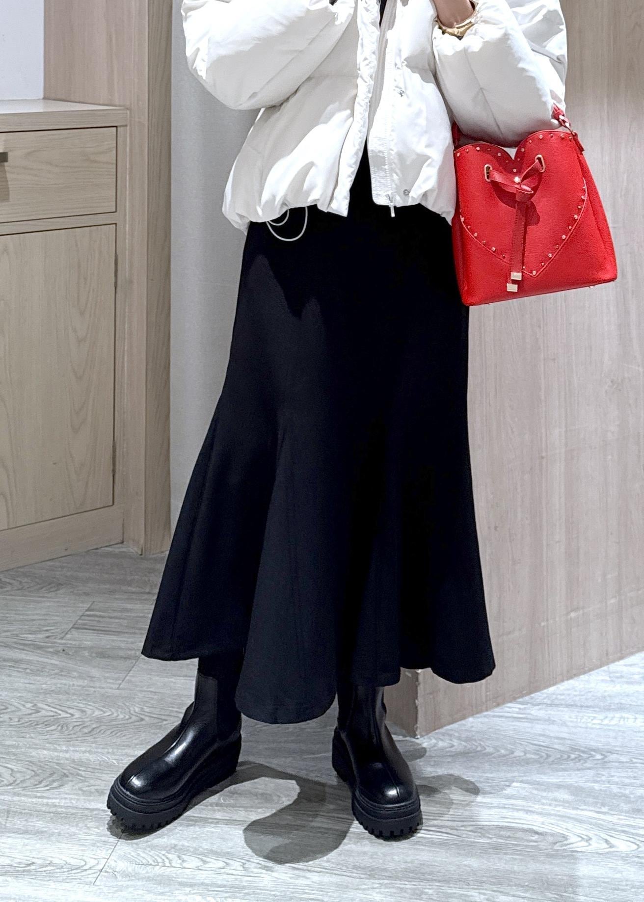 腰回りはスッキリ、膝上辺りからマーメイドラインで動きがでるので下半身のシルエットをキレイに見せてくれました♪