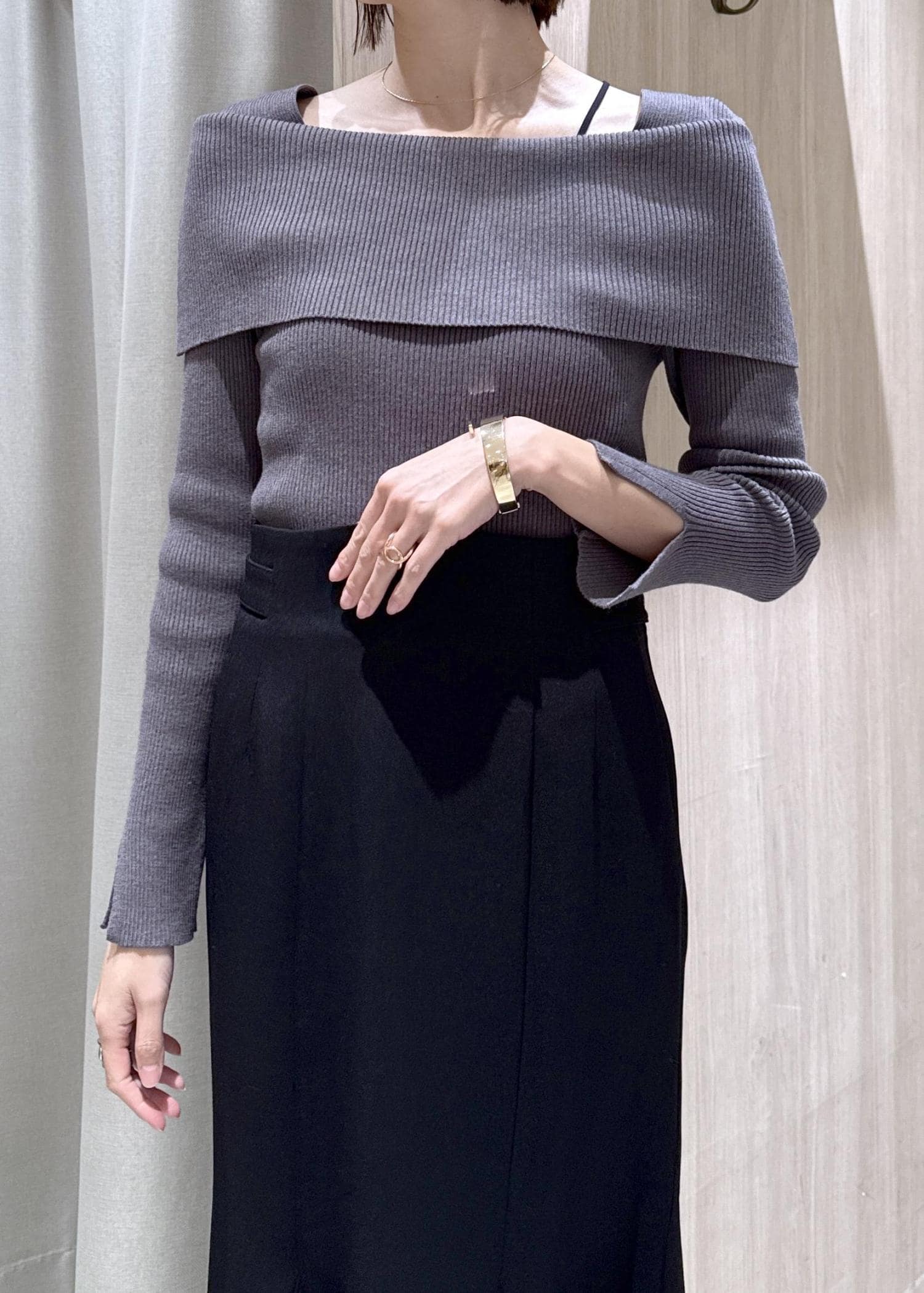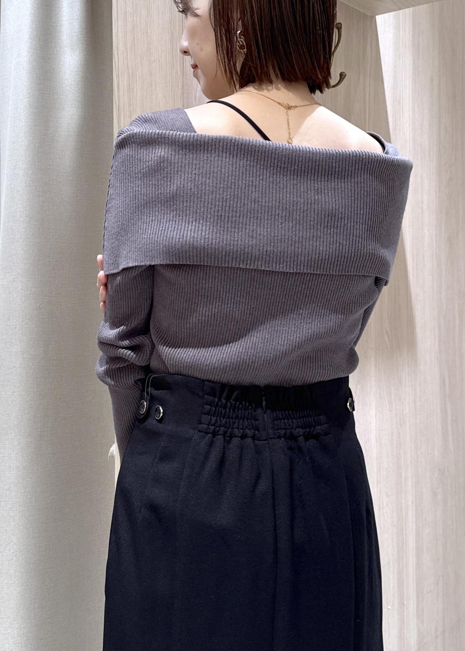 NEW!VIS【美得】オフショルダーモチモチリブニット/好評につき再入荷グレー / F¥5,489レビュー身長166センチでお尻掛かる長さでした。袖はスッキリ、見頃はやや余裕ありのサイズ感でした。