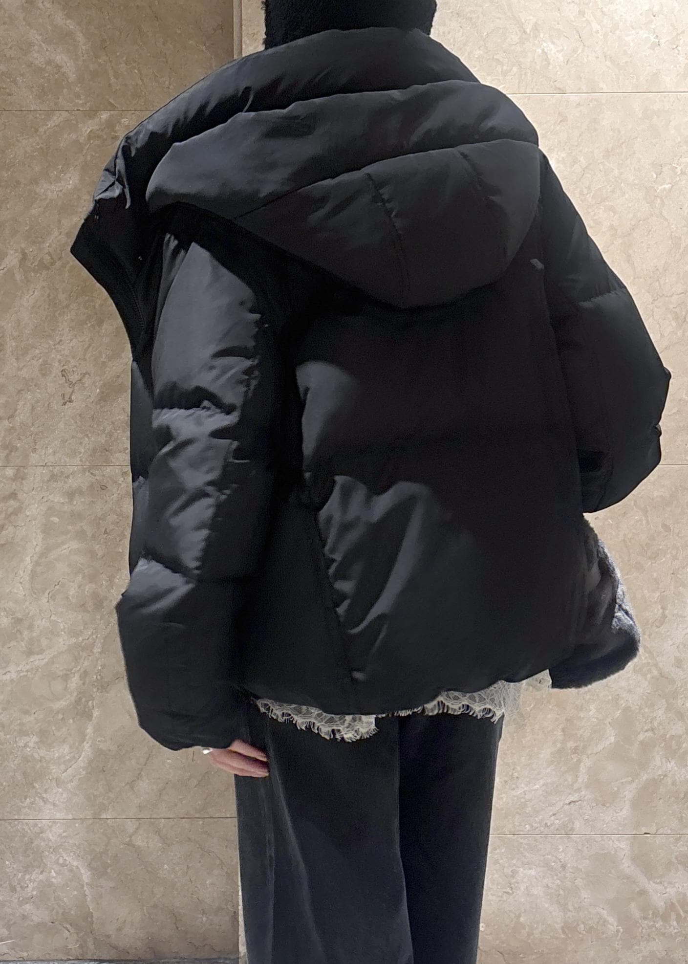 VIS【アウター総選挙3位】フード取り外し可能軽量ダウンブルゾン/2WAY・撥水加工ブラック / L¥18,480レビューMサイズでも問題なく着用できましたが、Lサイズの方が脇や肩周りに余裕があり、着心地が楽ちんでした。