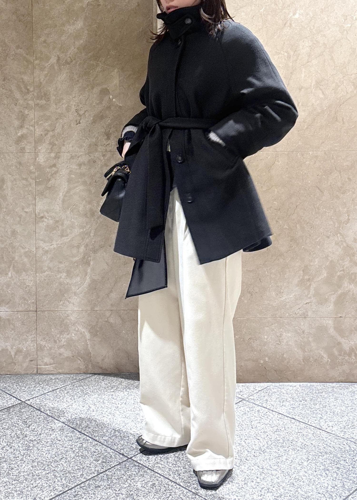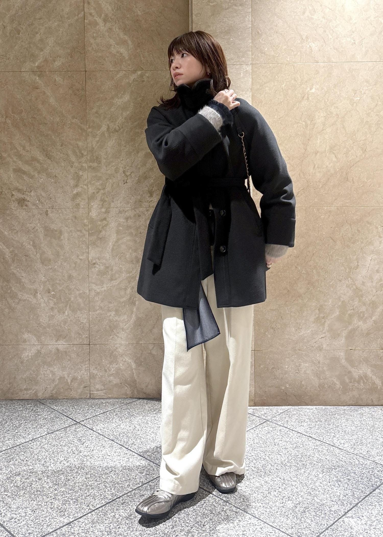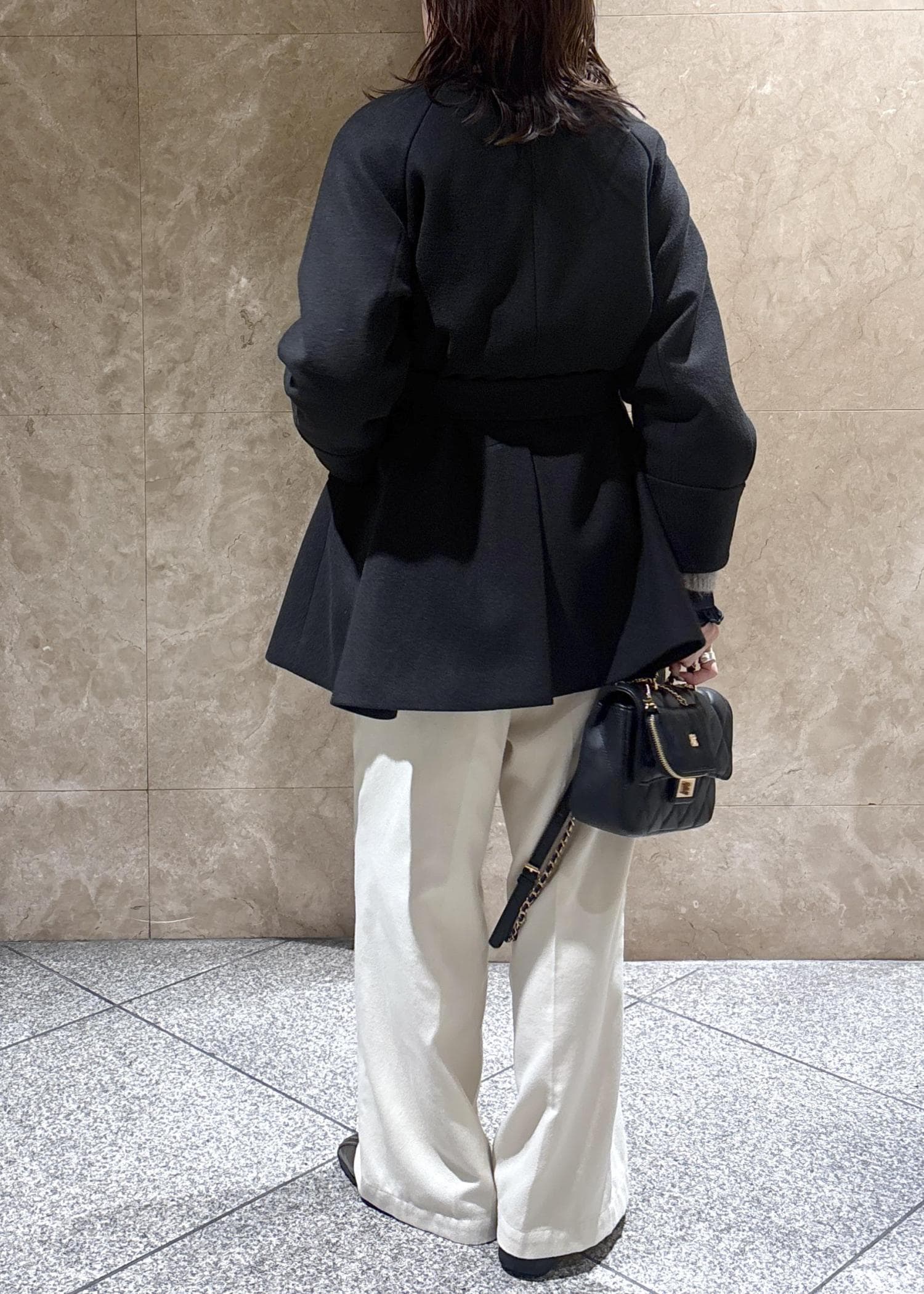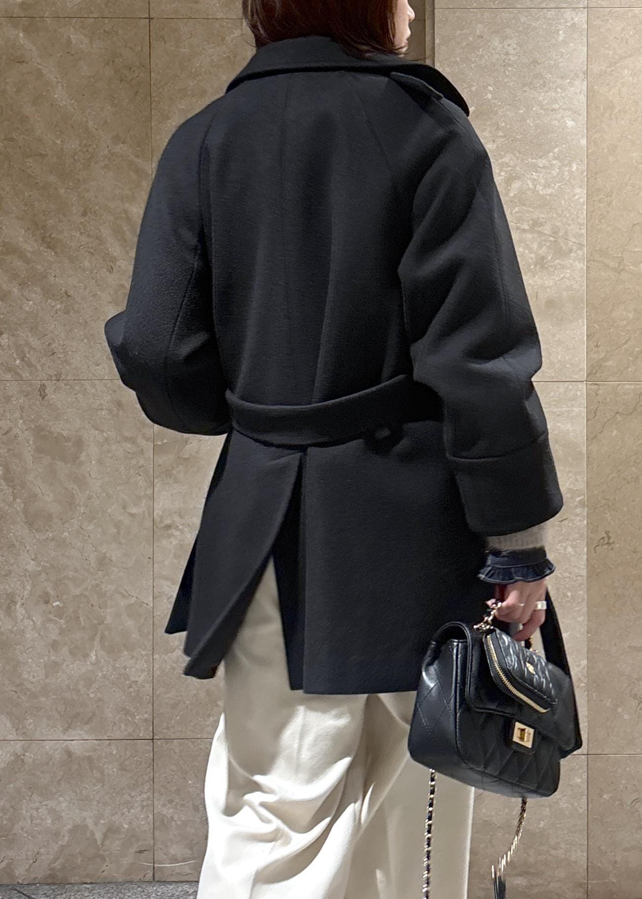 VIS【アウター総選挙2位】フレアーチェスターコートブラック / F¥14,080レビュー太ももの付け根あたりも隠れる長さ。