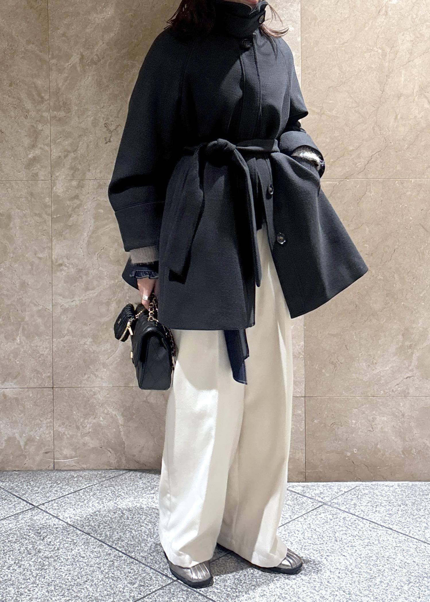 VIS起毛ウールライク版ベルトディテールタックワイドパンツキナリ / M¥5,271レビューベルトをおへその位置でしっかりハイウエストで履くと足首が出る丈ですが、へそ下で履いてもシルエットが崩れなかったので、敢えて腰で落として着丈長めに着用しています。