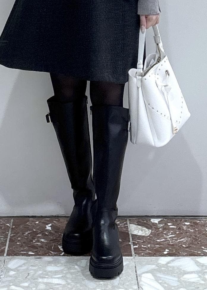 VISサイドバックルタンクソールロングブーツブラック / L¥10,989レビュー24.0cmでLサイズ着用。外反母趾で足幅広めですが、ストレスなく履けました〇