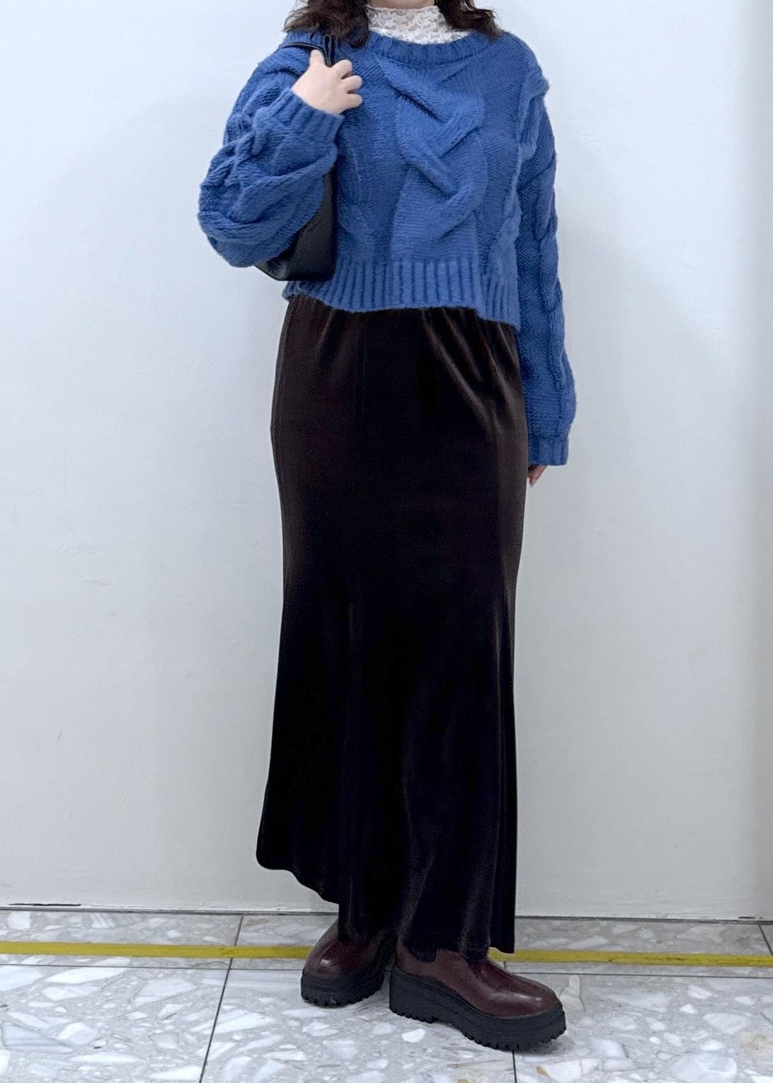 普段腰回りのラインが気になってスカートをあまり履かないのですが、これはベロア素材でラインを拾わず、しかもシルエットがきれい!!