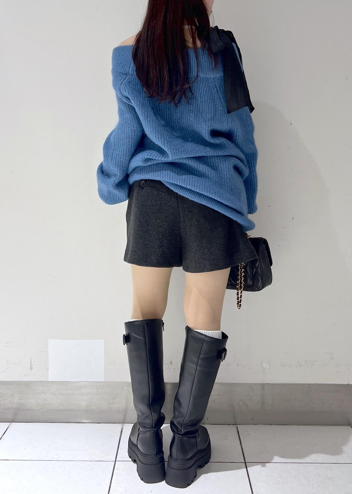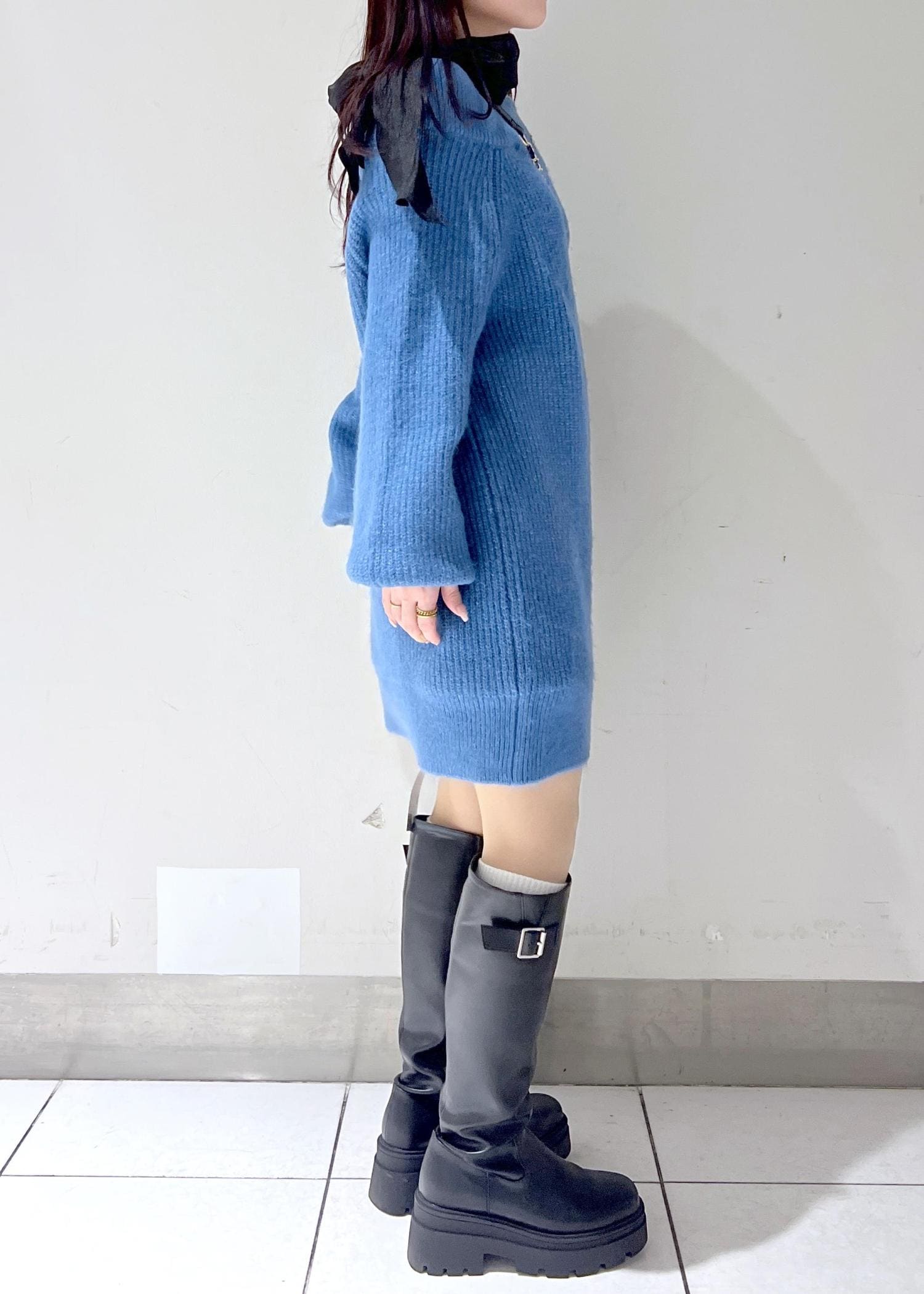 VIS肩リボンミニ丈ニットワンピース/2WAYブルー系 / F¥7,909レビュー152cmで伸ばして着ると膝上丈でした!