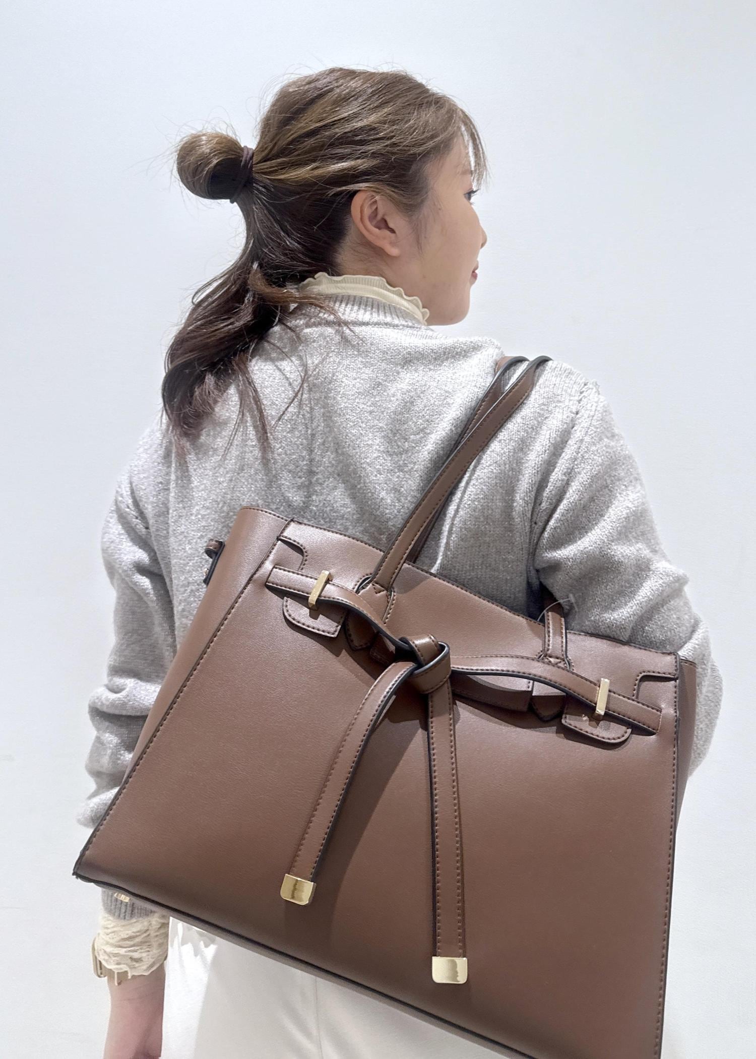 VIS【新色追加】【A4収納】フラップタイトートバッグダークブラウン / F¥7,909レビューリボン付きのトートバッグ⭐︎見た目が可愛いのはもちろん、ファスナー付きのバッグで内側にポケットが付いており、物もたくさん入ります!大きさ的にお仕事用で使えるタイプなので、A4サイズのノートやファイル、13インチのノートパソコンやiPadが入ります。