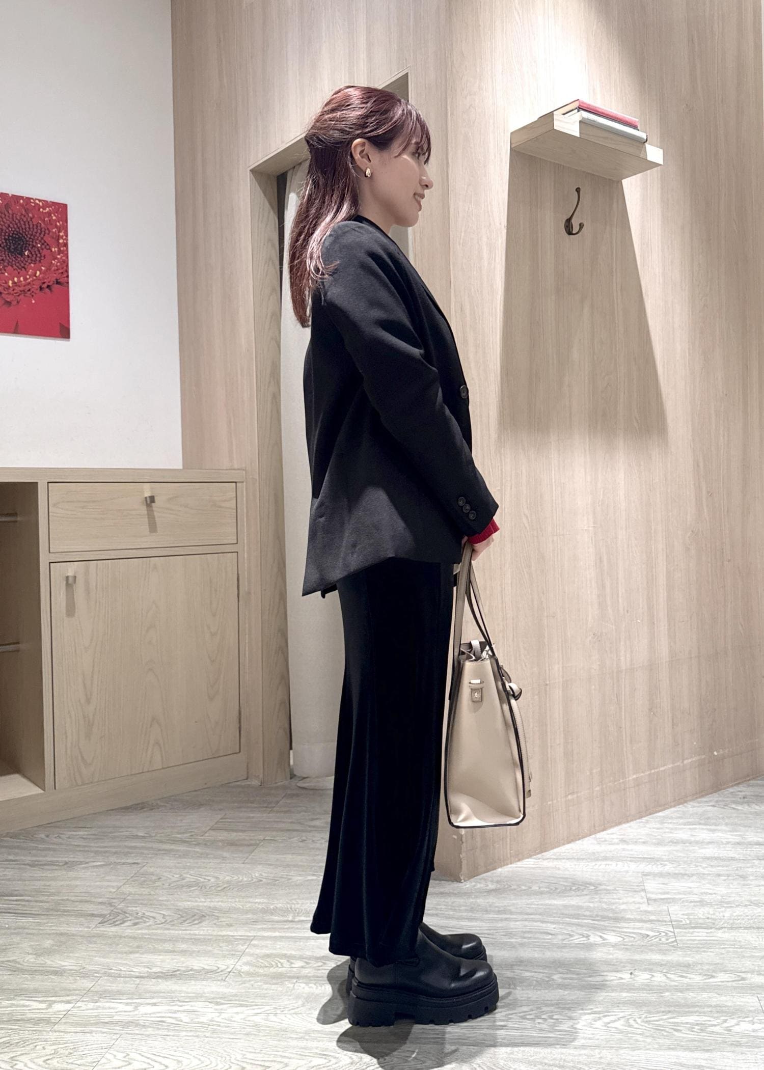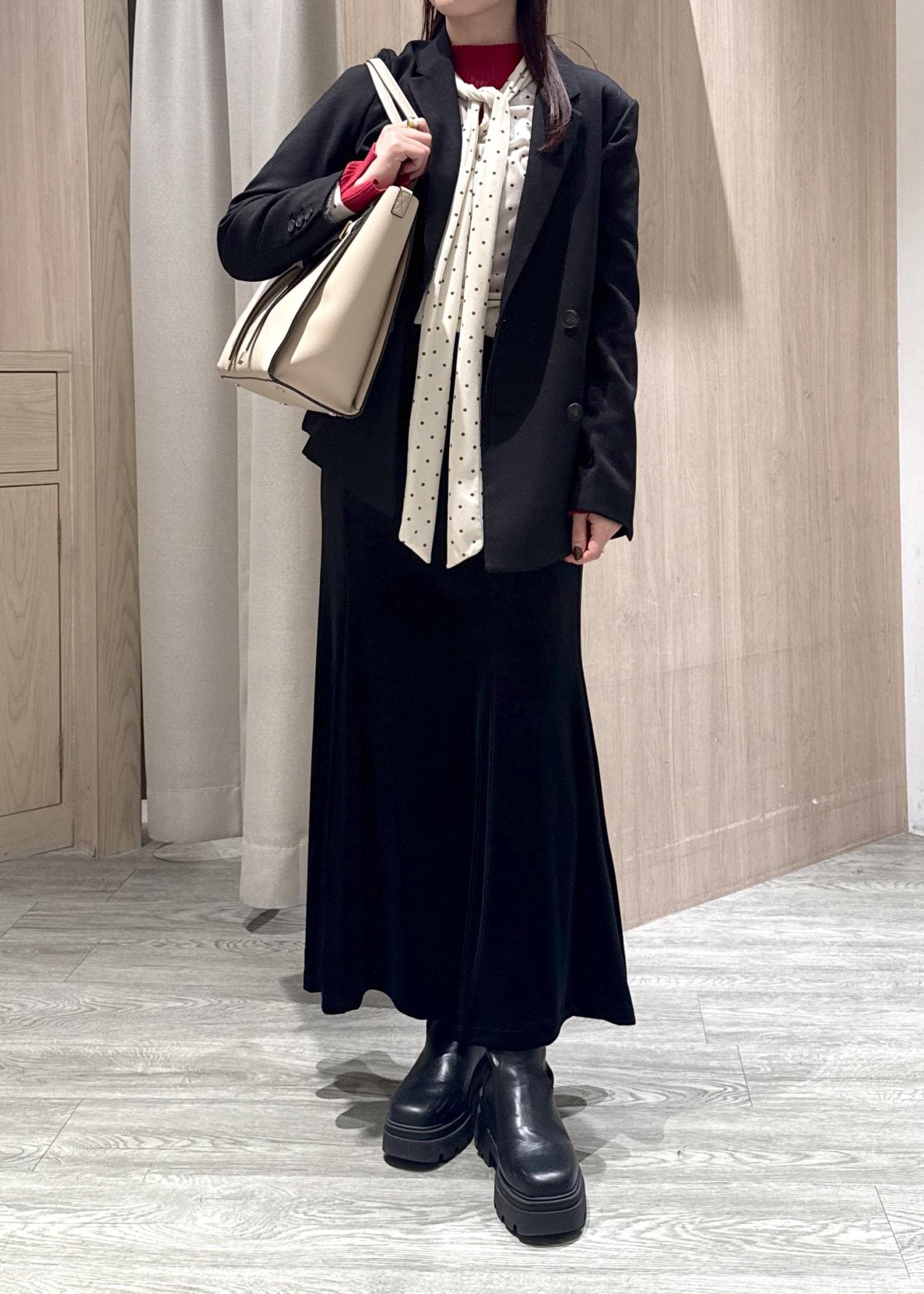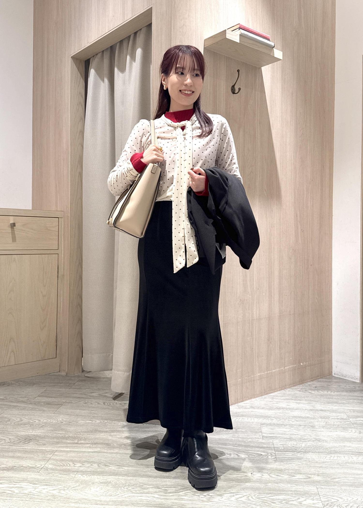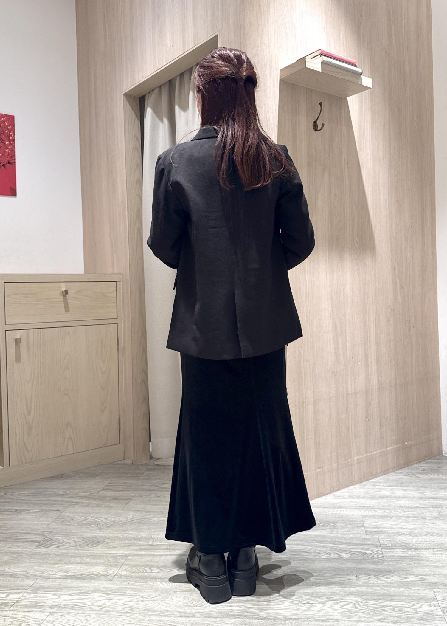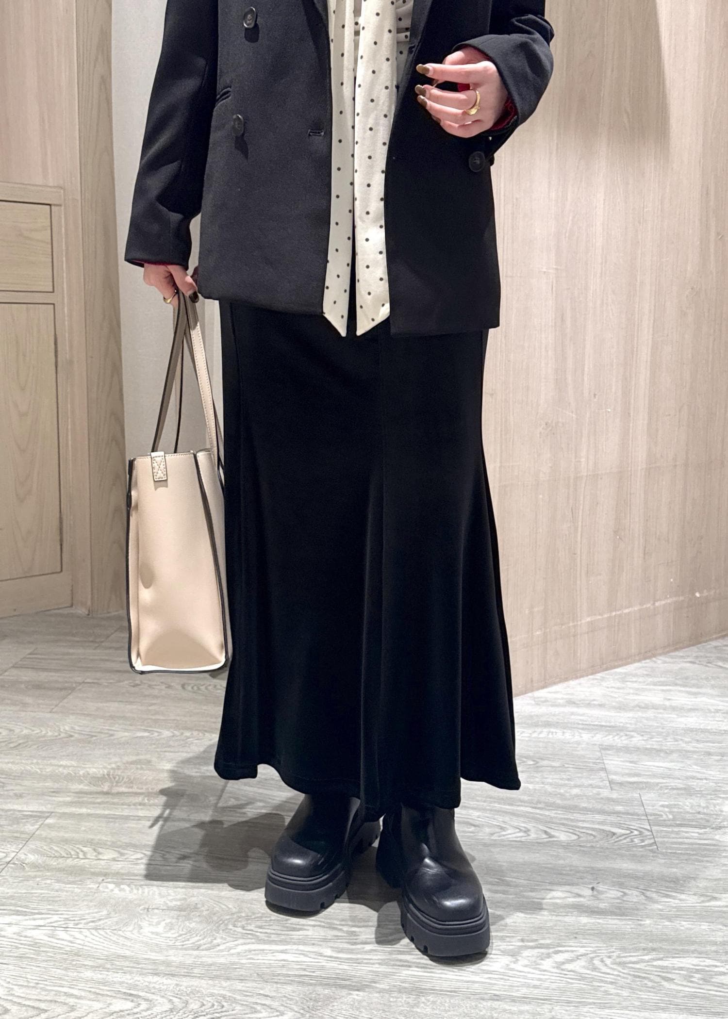 足首にかかる丈感でした。生地も厚みがありとても暖かいです✨腰回りは程よく身体のラインを拾うため、とてもキレイに見せてくれます!季節感も上品さもプラスしてくれるこの冬大活躍のスカートです! -