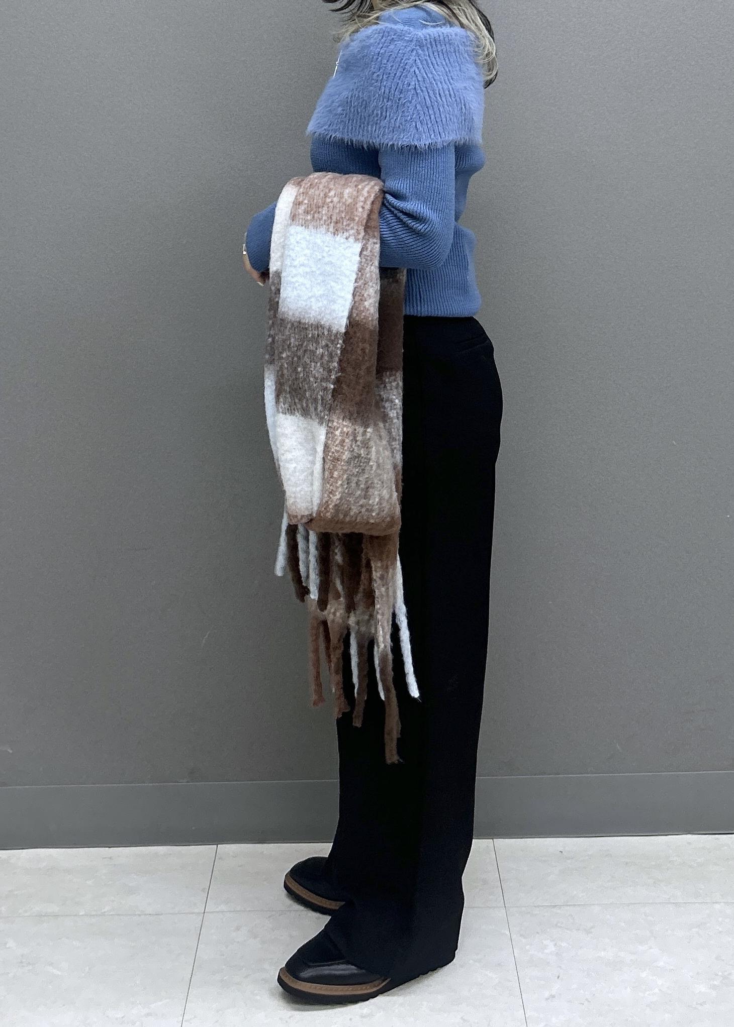 肩からかけると膝丈くらいまである長めの作りなので、色々な巻き方でアレンジできます!