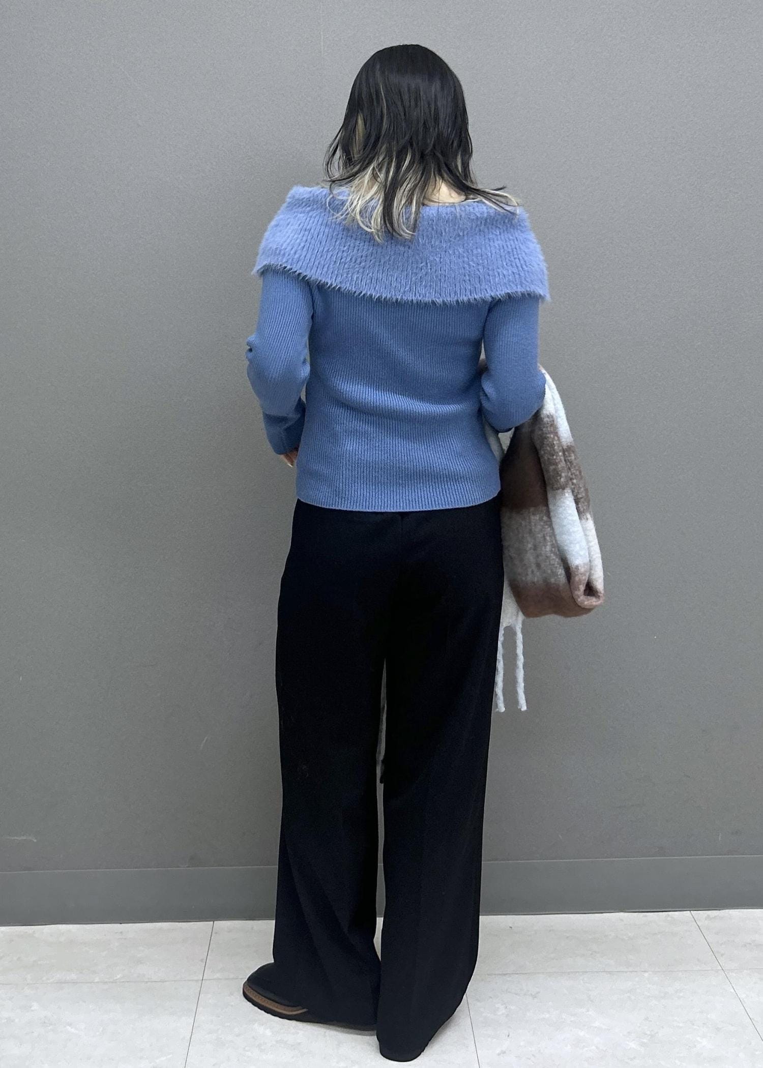 VISフェザーヤーンオフショルもちもちリブニット/イージーケアブルー系 / F¥5,929レビュー157cmでお尻にかかるくらいの着丈でした。