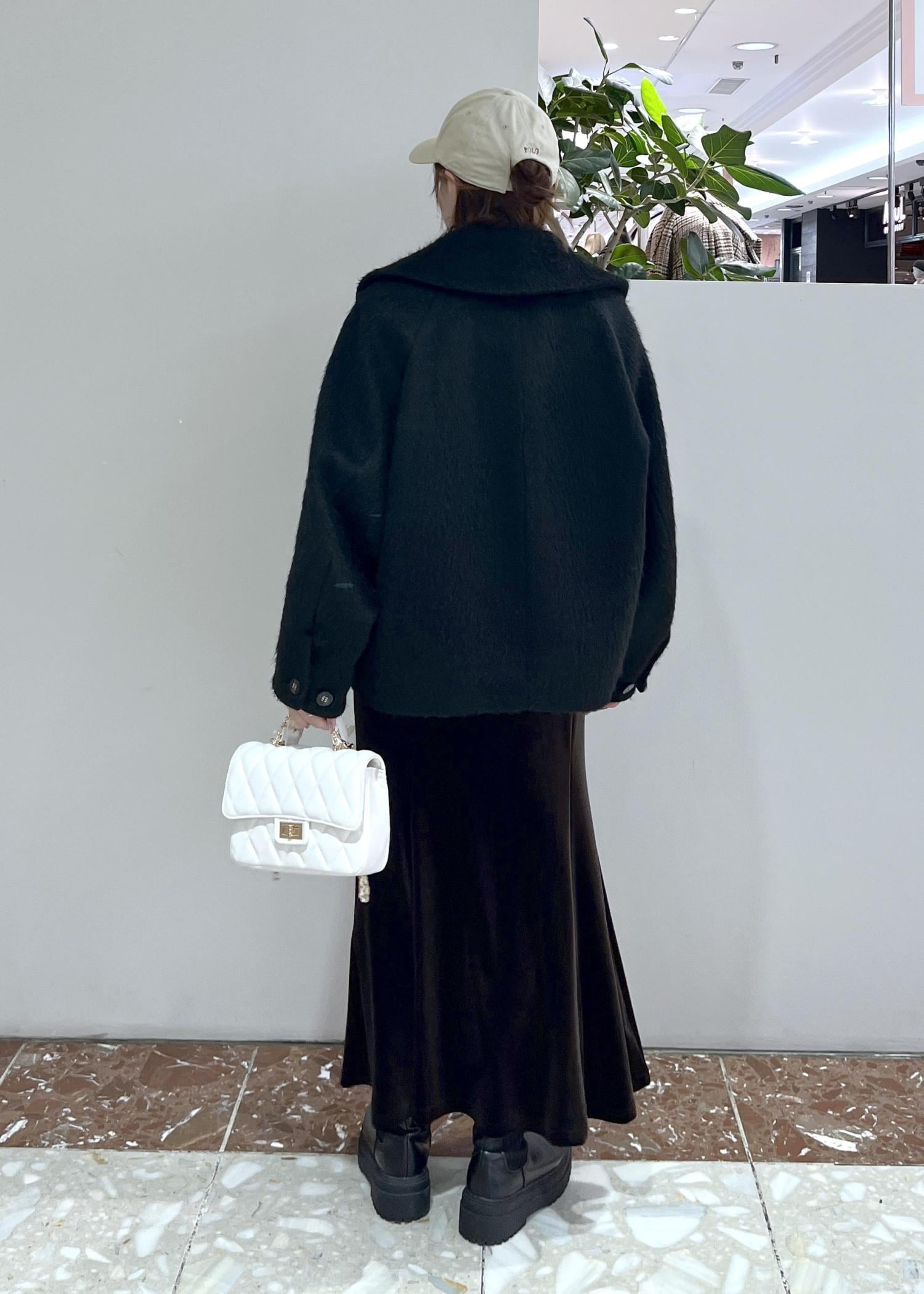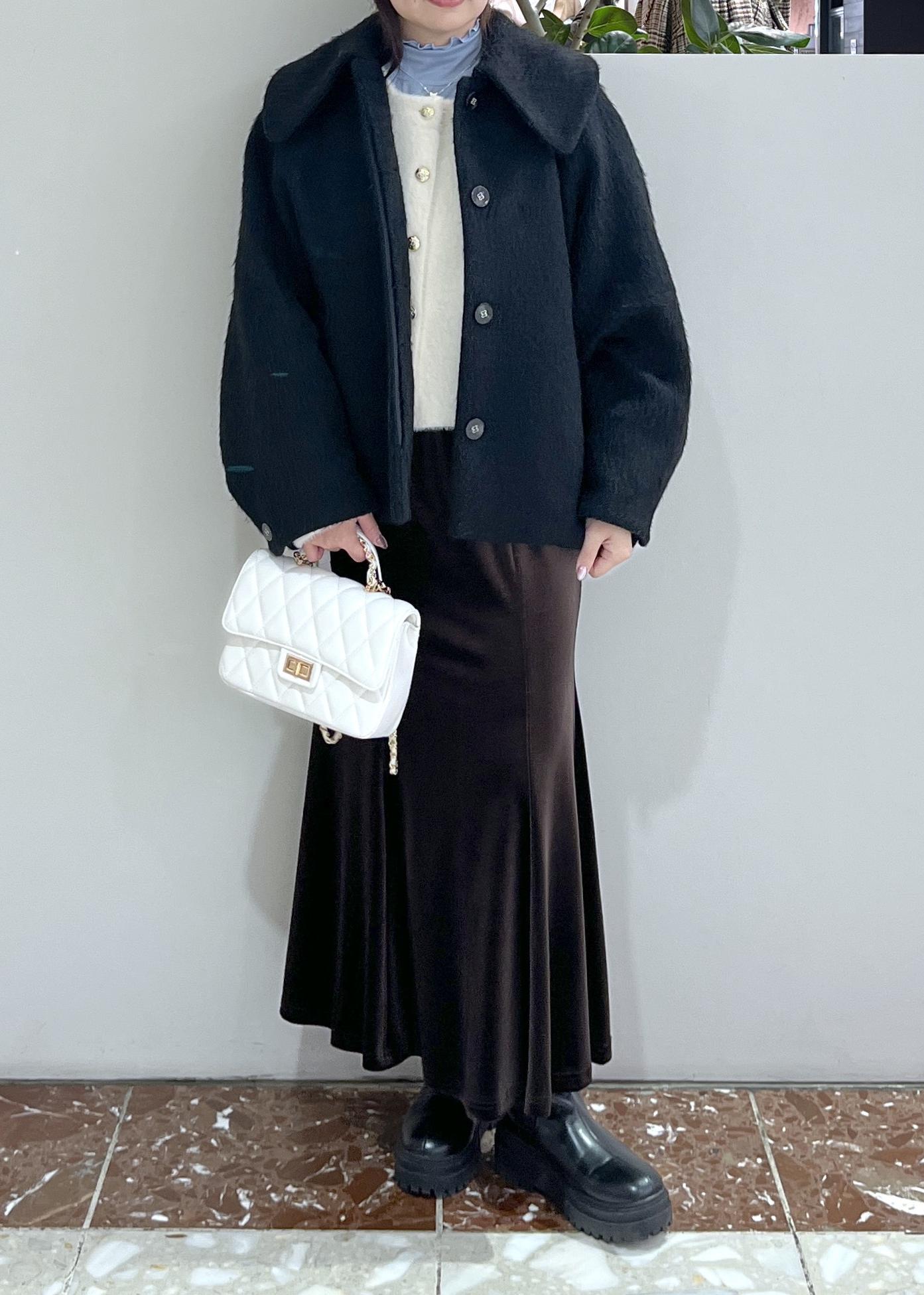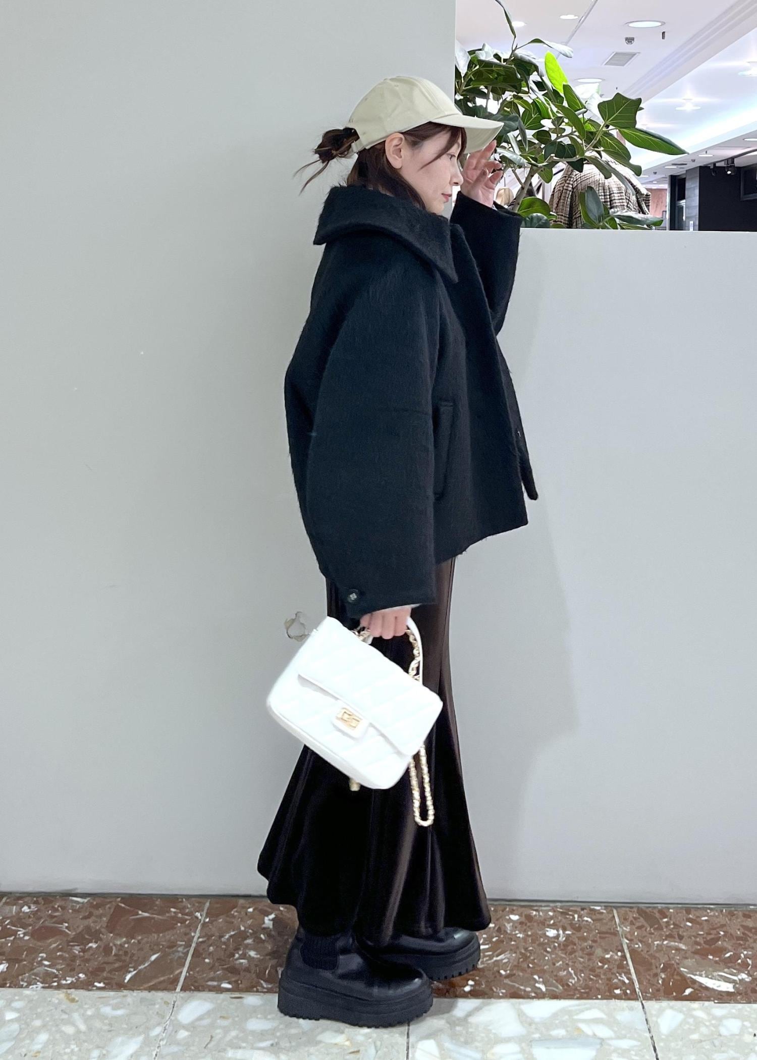 大きめなエリとシャギーの素材がマッチして可愛いらしいコートです。丈はやや長めのショート丈なので甘くなりすぎず、通勤通学、休日カジュアルなどオールマイティに着こなせます◎