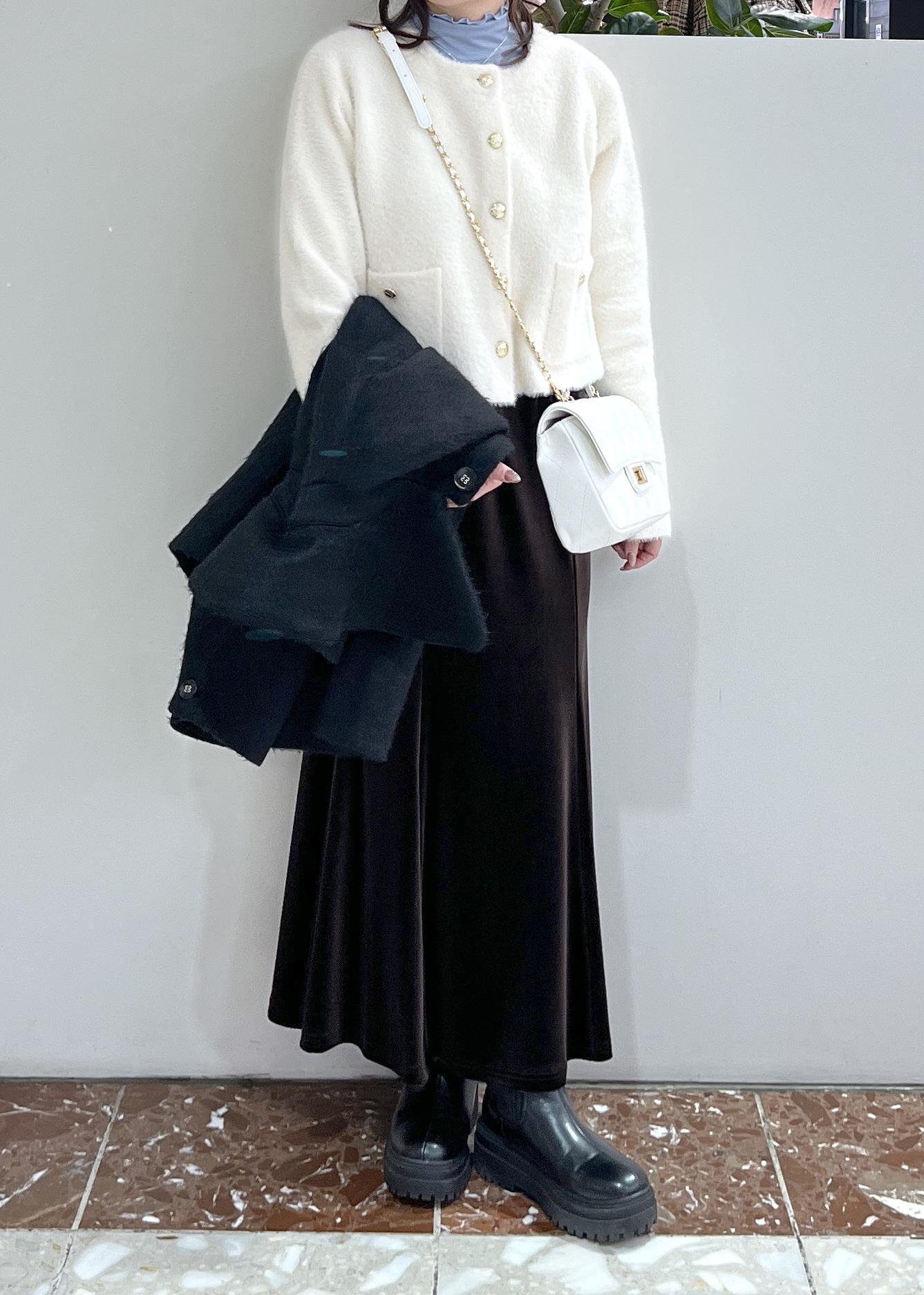 VIS接結ミニフェザーニットジャケットカーディガン/一部WEB限定カラーオフホワイト / F¥6,919レビューファーカーディガンとってもふわふわで肌触り抜群です。着丈がスッキリ目なので、レイヤードを楽しんだり、そのまま着てもスタイルアップして見えます。
