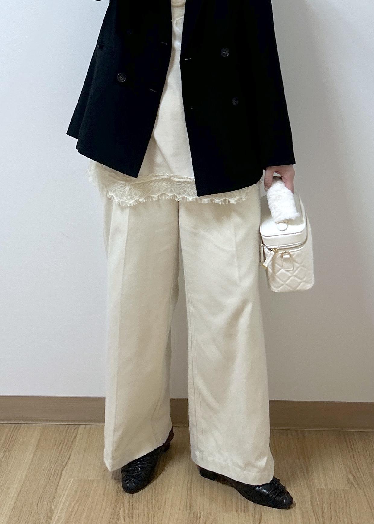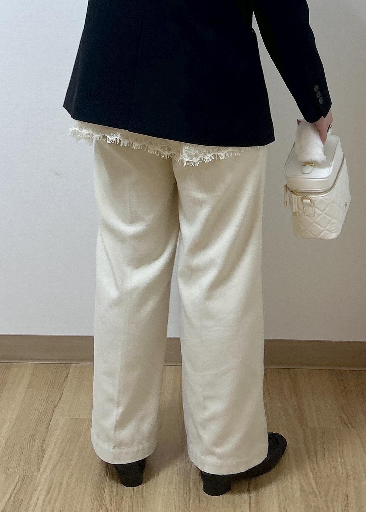VIS起毛ウールライク版ベルトディテールタックワイドパンツキナリ / M¥5,271レビュー163cmでMサイズ着用で足首が隠れる着丈です。
