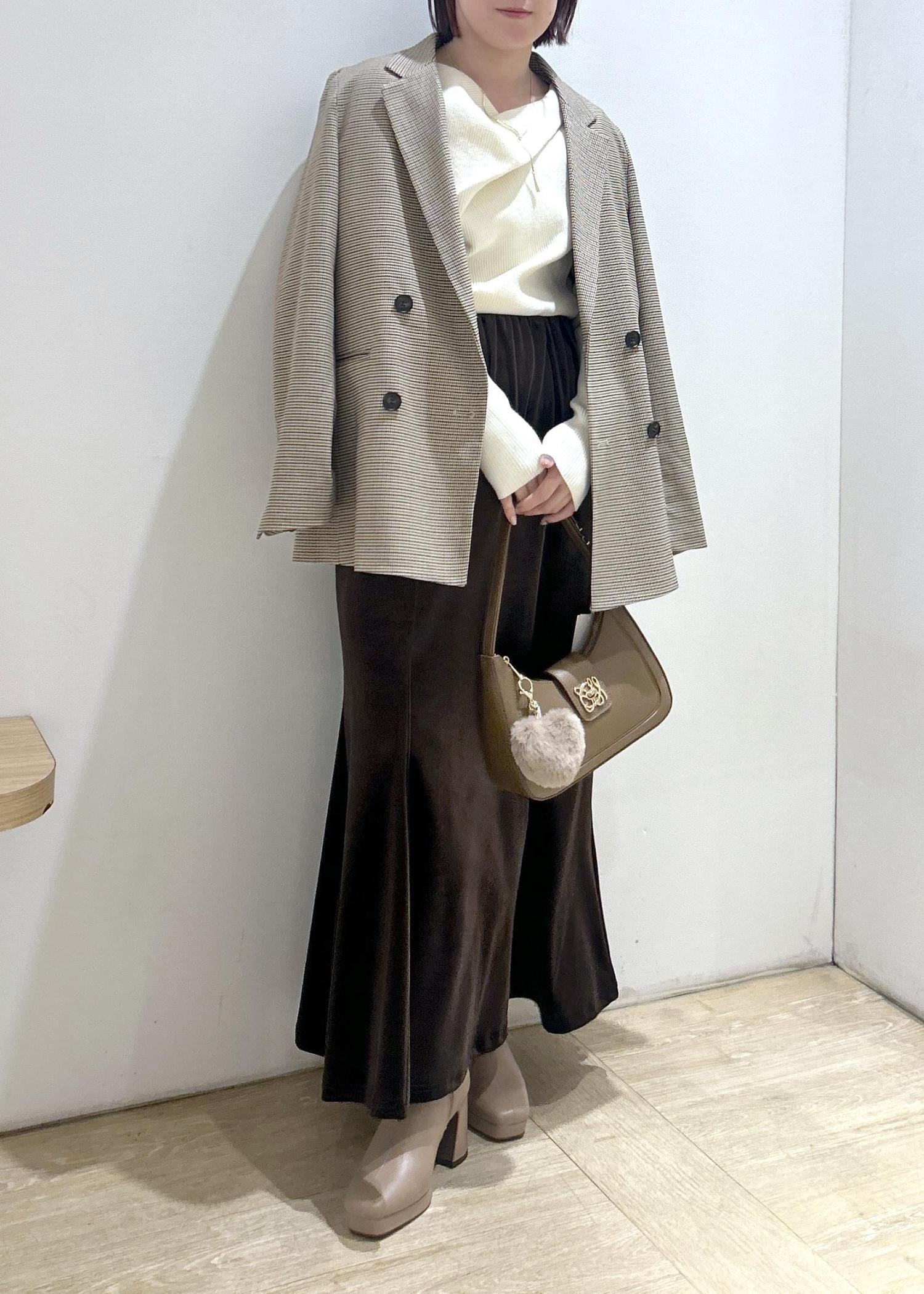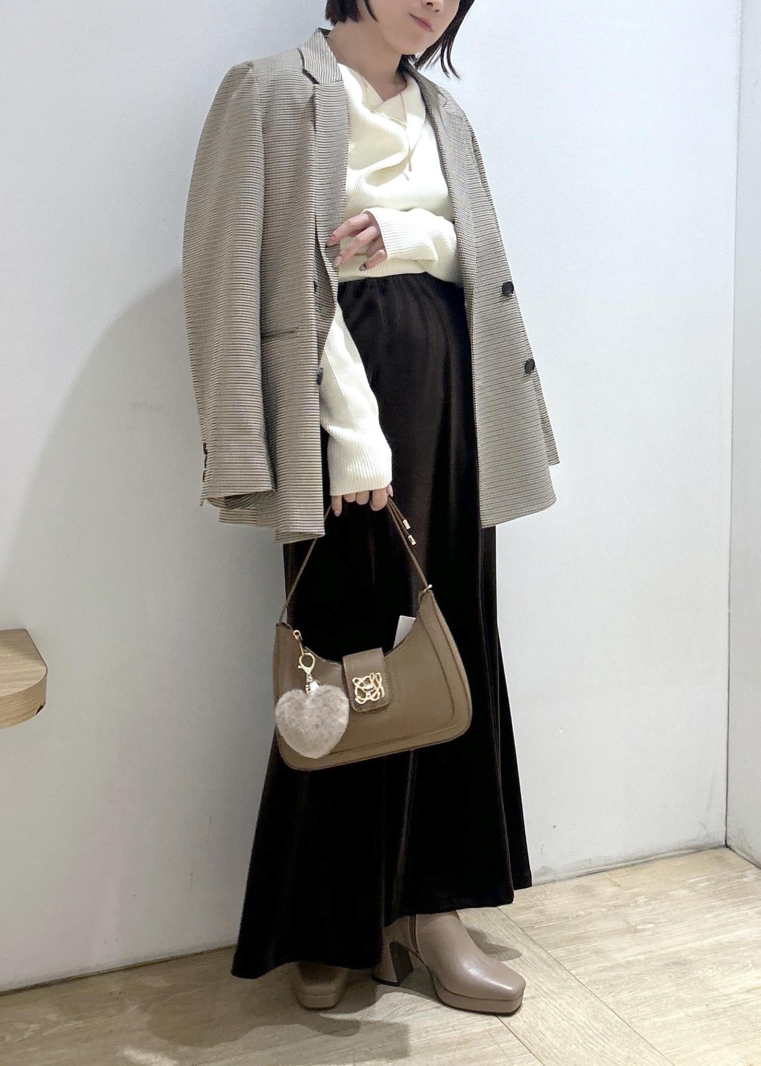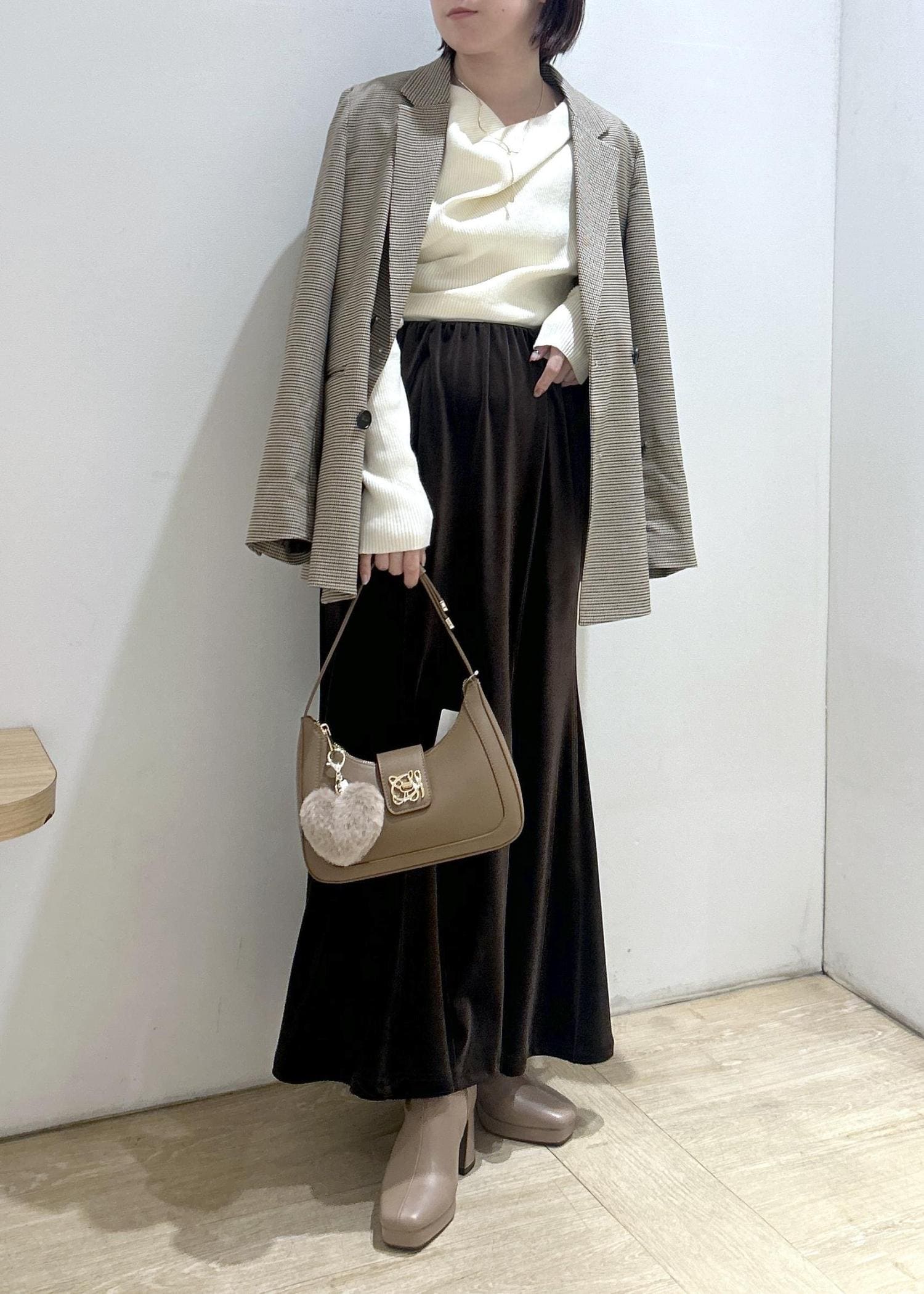 VISベロアナロースカートダークブラウン / S¥6,589レビューウエストゴムで楽に履けます。トレンドのベロア素材で、ナローシルエットなので低身長の方にもおすすめです。