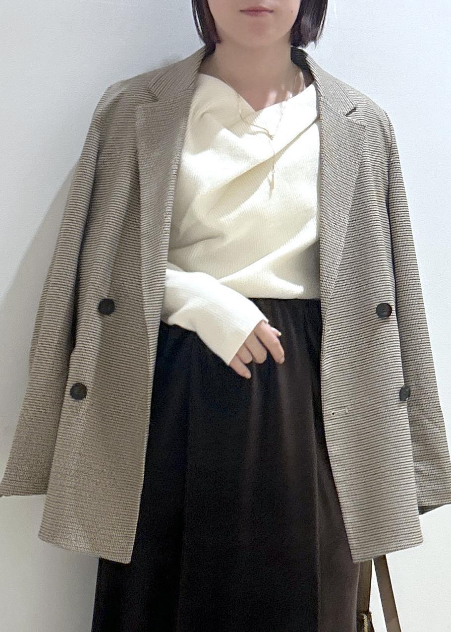 VIS【美easy】ウーリッシュダブルブレストテーラードジャケット【セットアップ対応/洗える】ベージュ系 / M¥8,899レビューSサイズで中にハイゲージニットや長袖のカットソーを着られるサイズ感です。画像はMサイズ着用です。