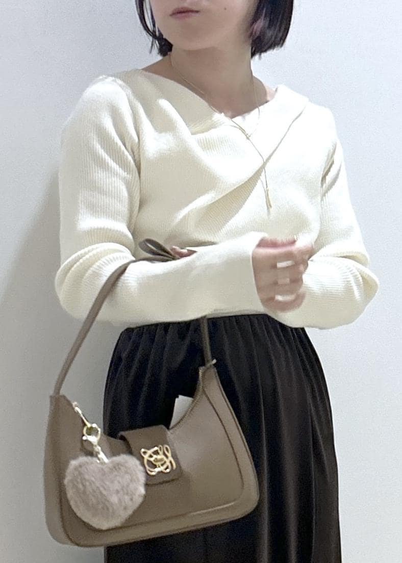 NEW!VIS【美得】もちもちドレープリブニットトップス/イージーケアオフホワイト / F¥4,389レビュー少し厚みのあるニットで、オフショルダー、ドレープデザインどちらでも着れるトップスです。