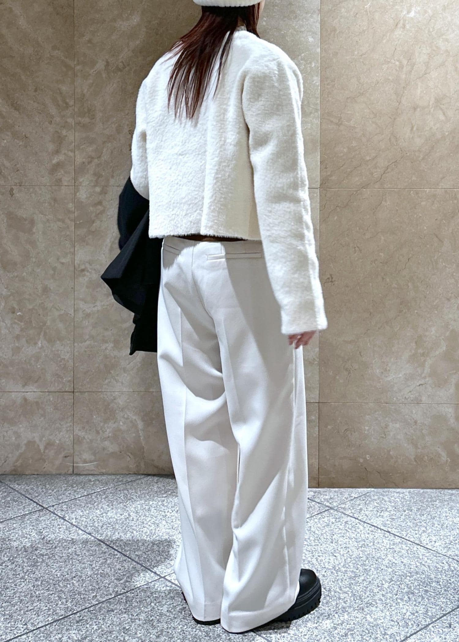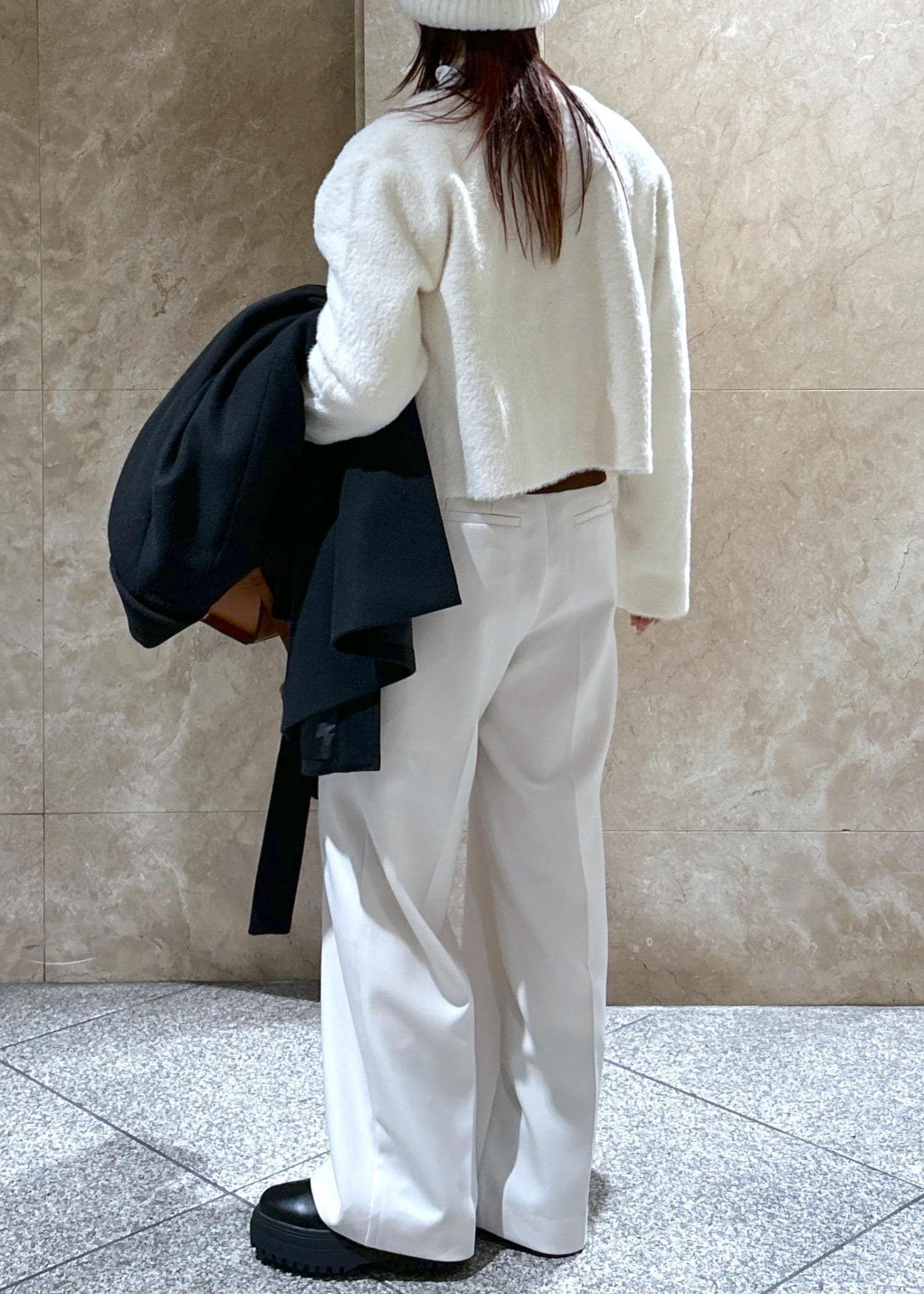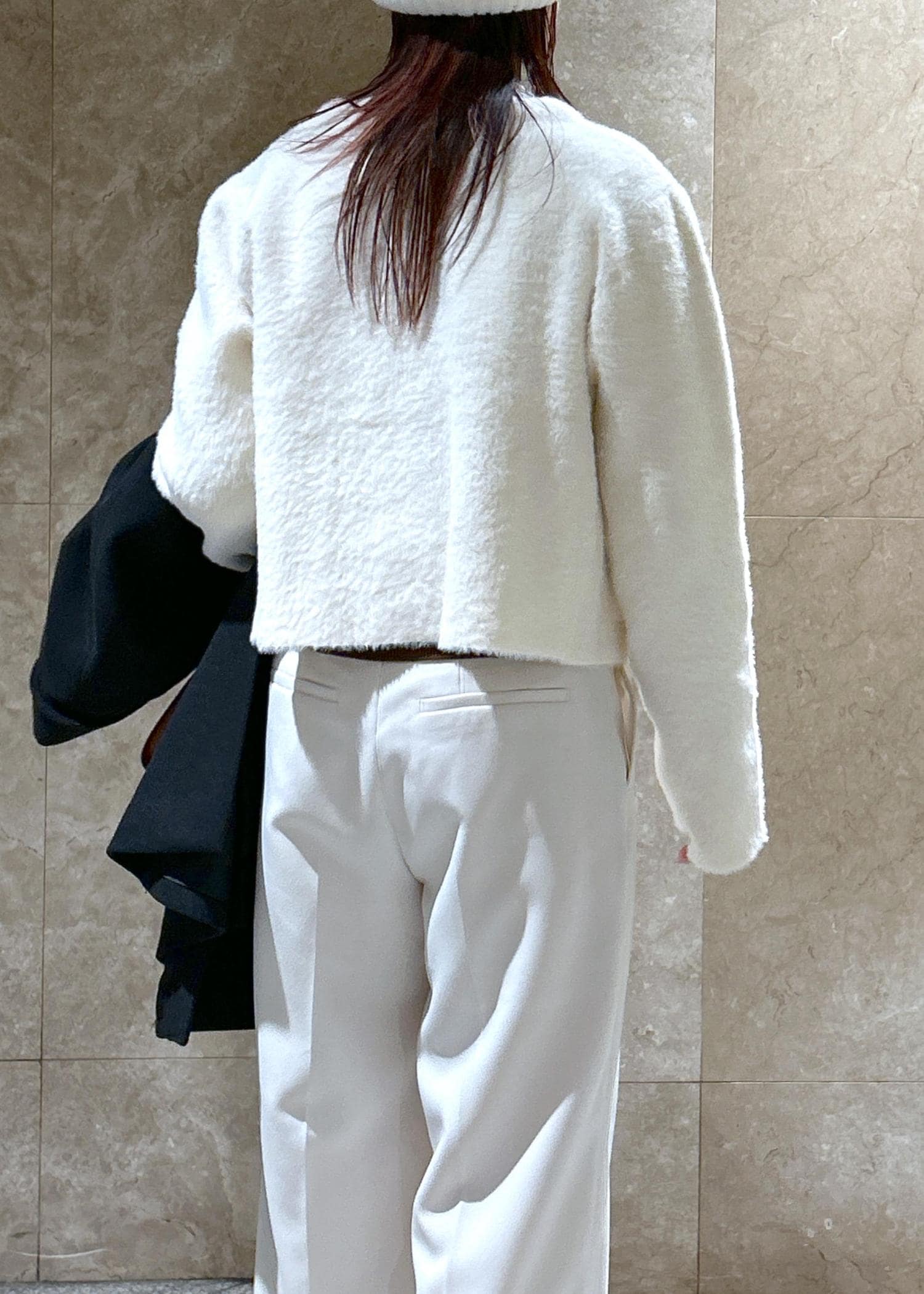 着丈は腰くらいと短く、パンツでもスカートでもワンピースでも!バランス良く着ていただけます! -