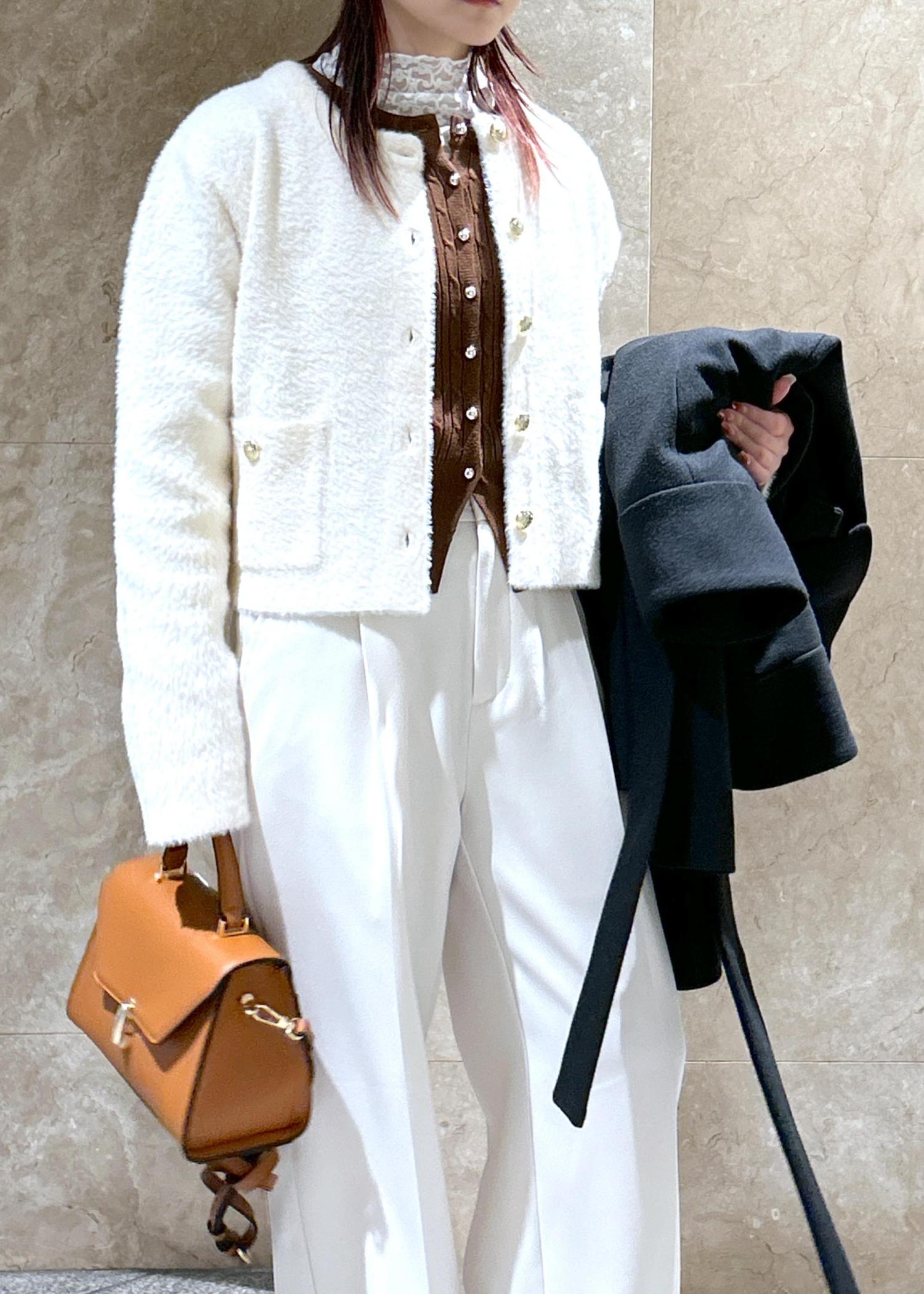 VIS接結ミニフェザーニットジャケットカーディガン/一部WEB限定カラーオフホワイト / F¥6,919レビューコンパクトなシルエットのニットカーディガンです。