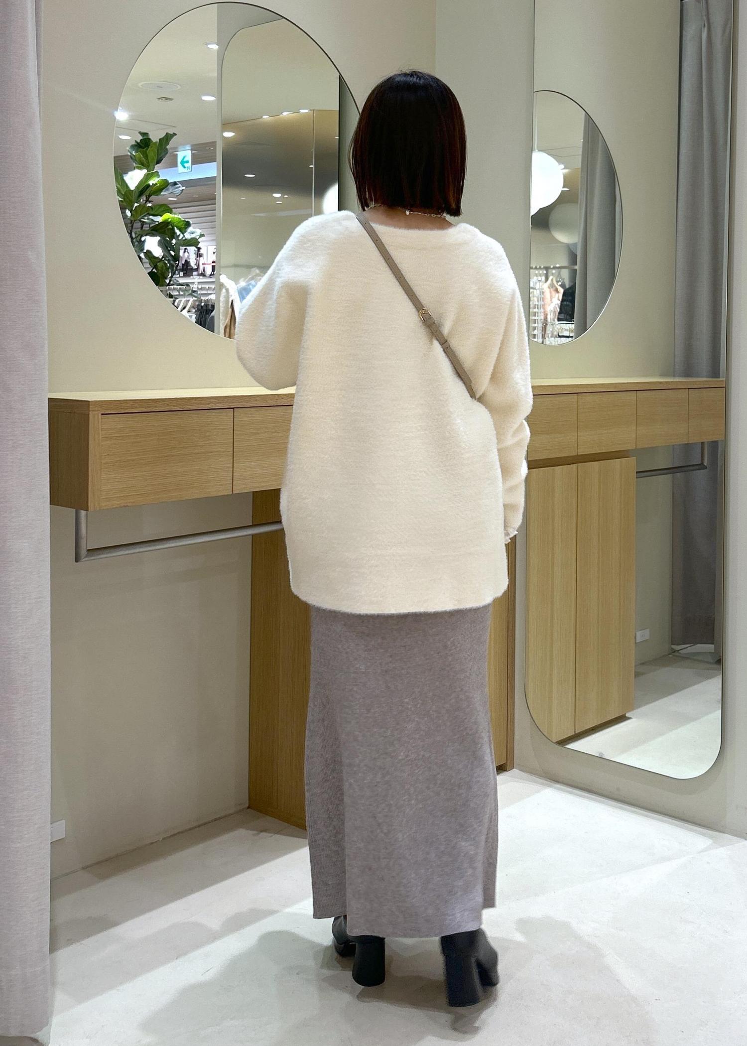 VIS接結メタルボタンミニフェザーニットコートオフホワイト / F¥7,999レビュー151cm、Fサイズ着用でヒップがしっかり隠れる長さです。