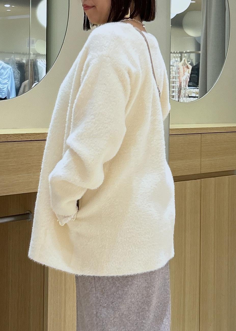 上品見えするミニフェザーのニットコートに