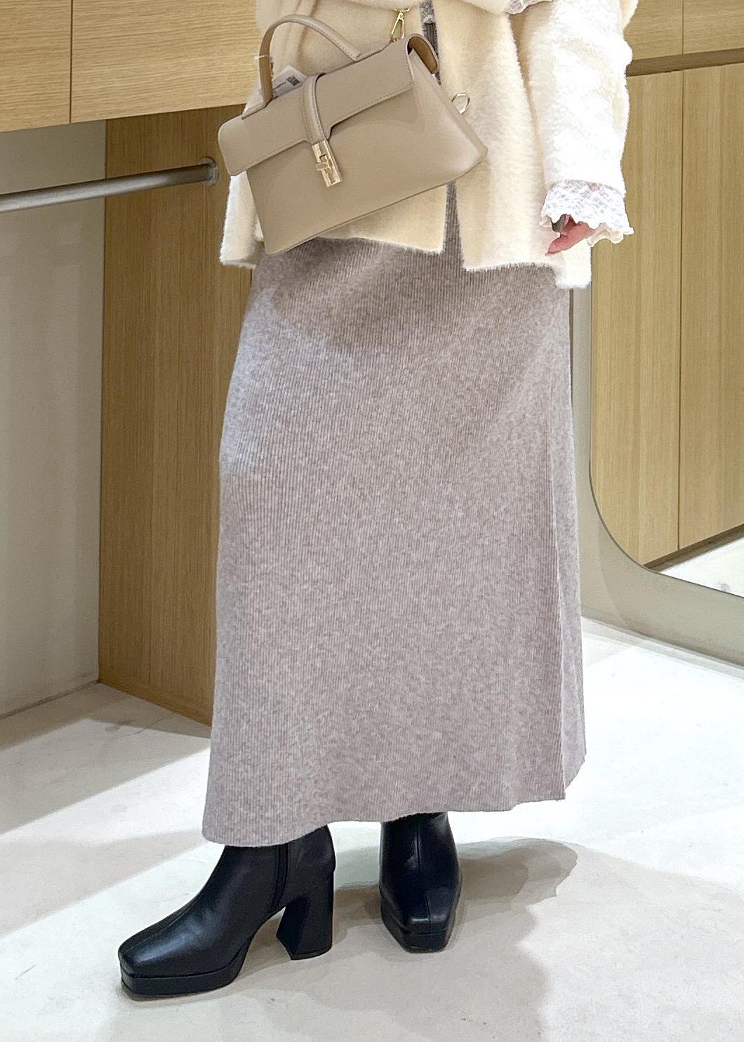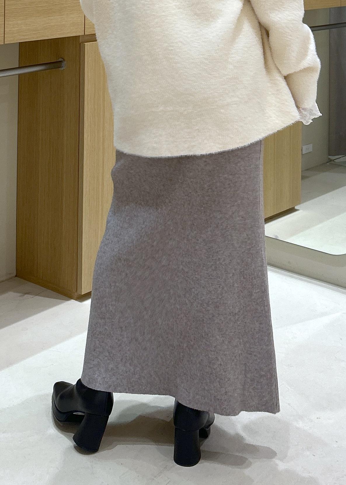 履き心地が楽なリブ編みスカートを合わせて