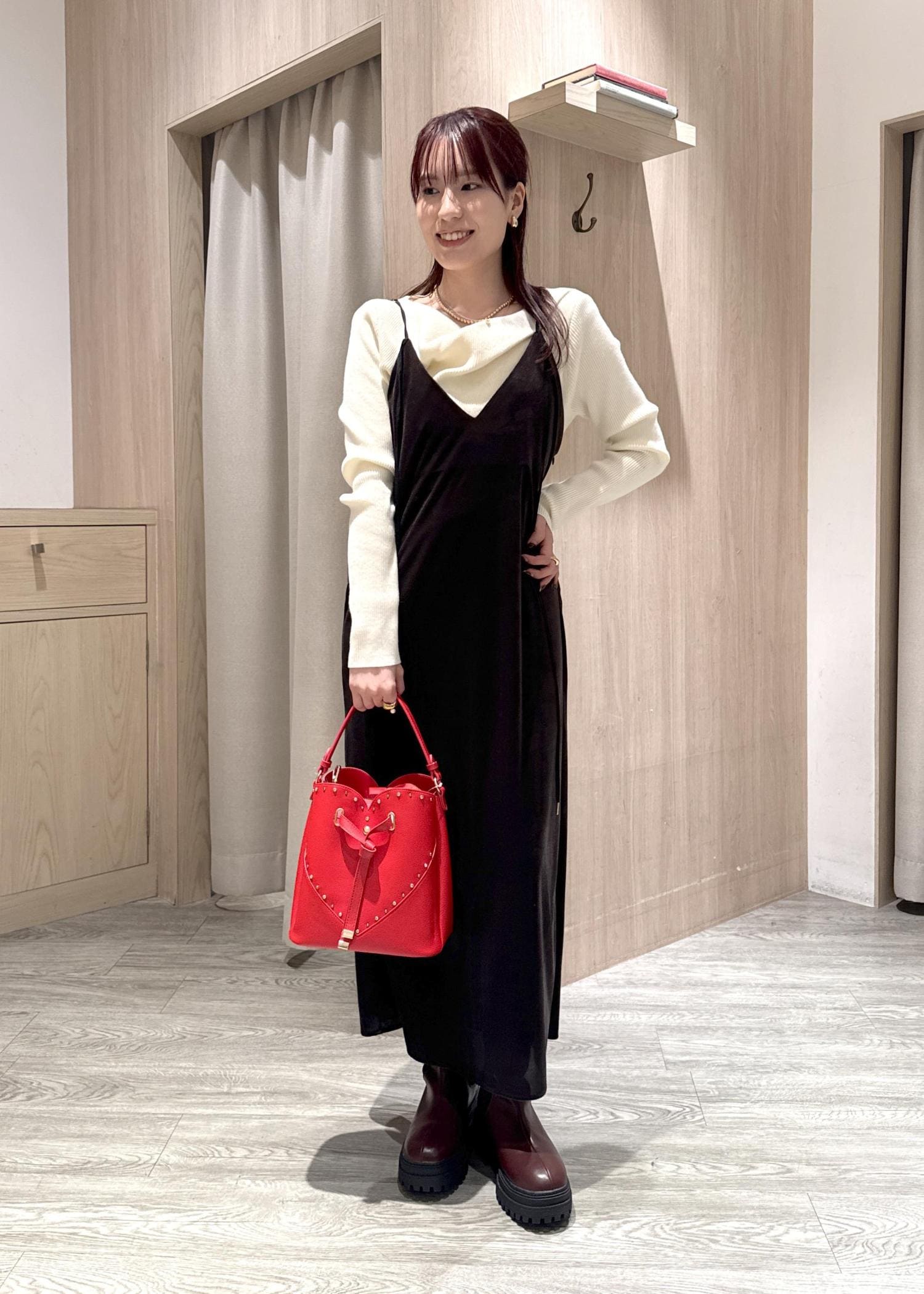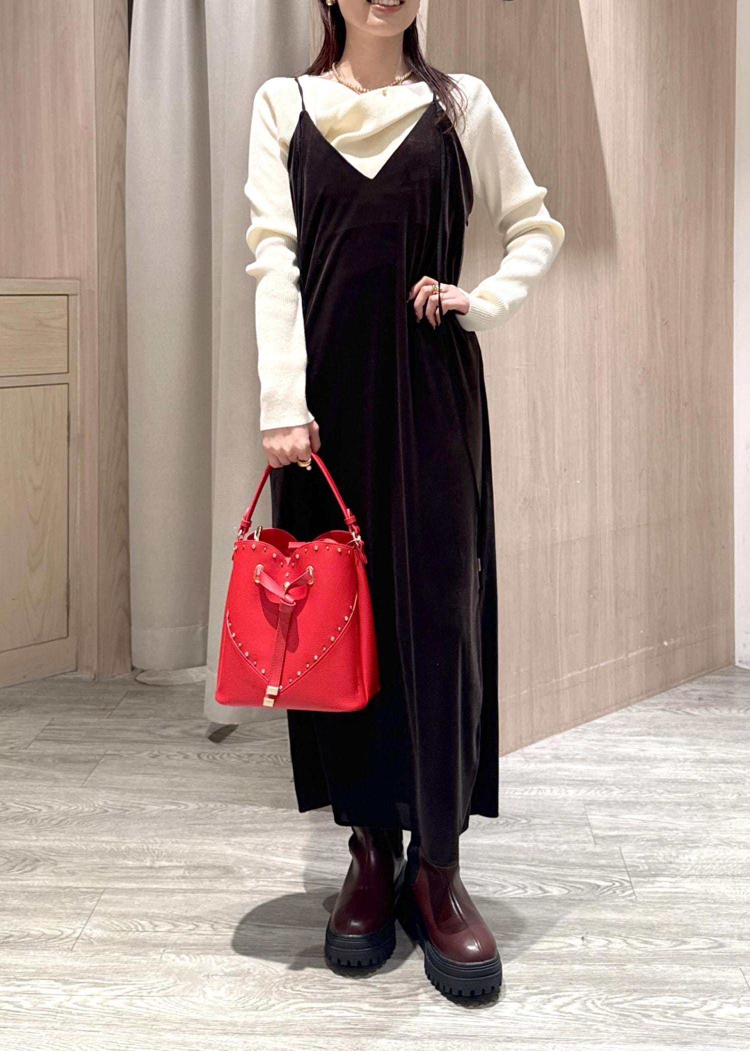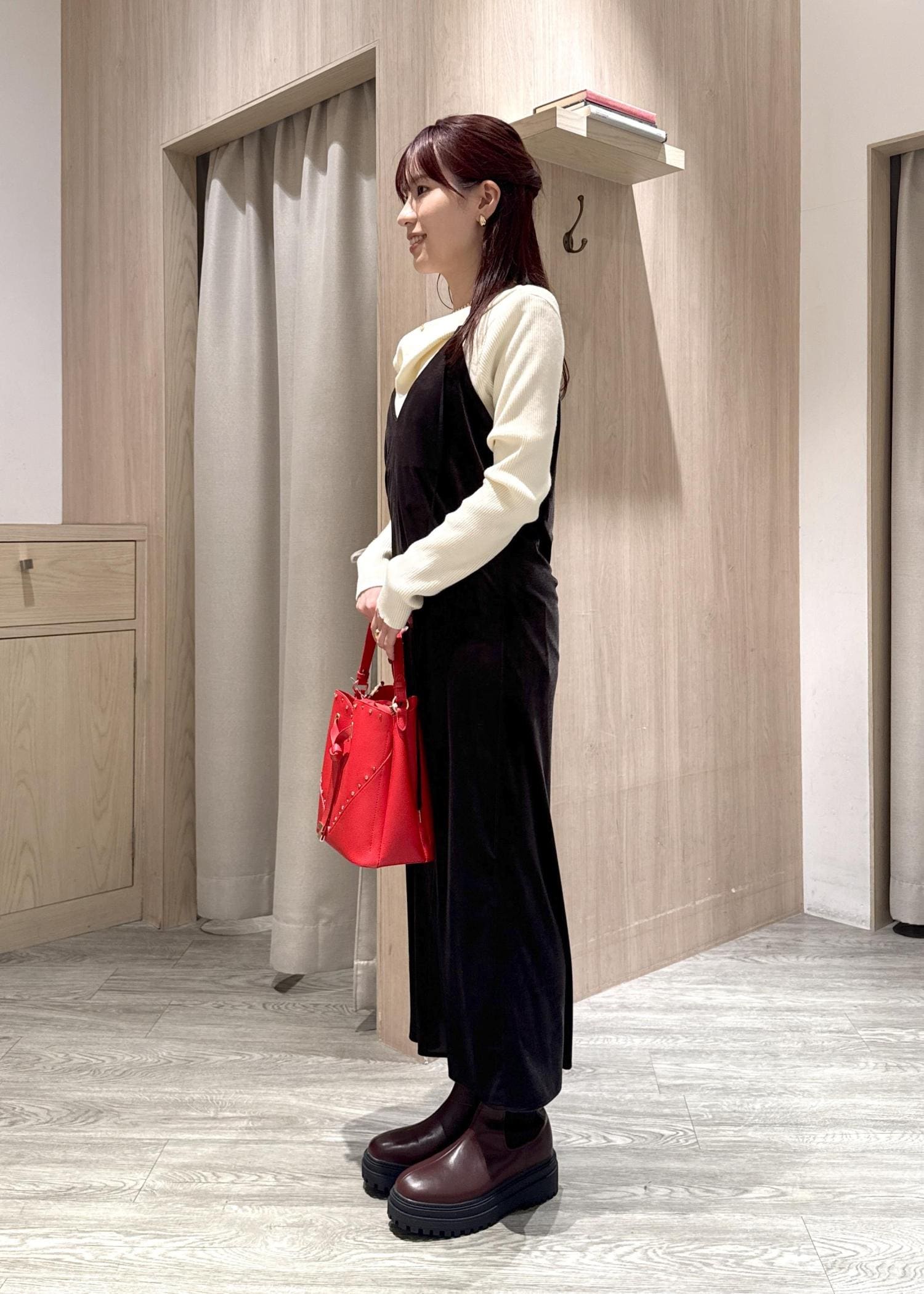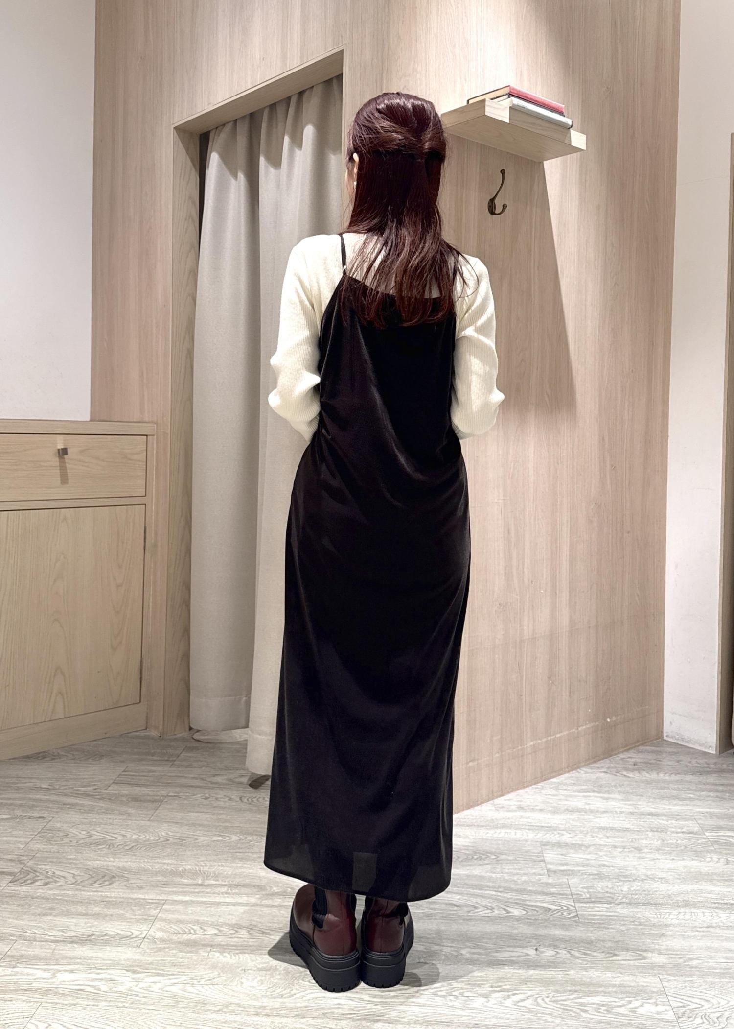 VIS刺繍アソートベロアキャミワンピース/2WAYダークブラウン / F¥8,899レビュー身長157cm / Fサイズ着用