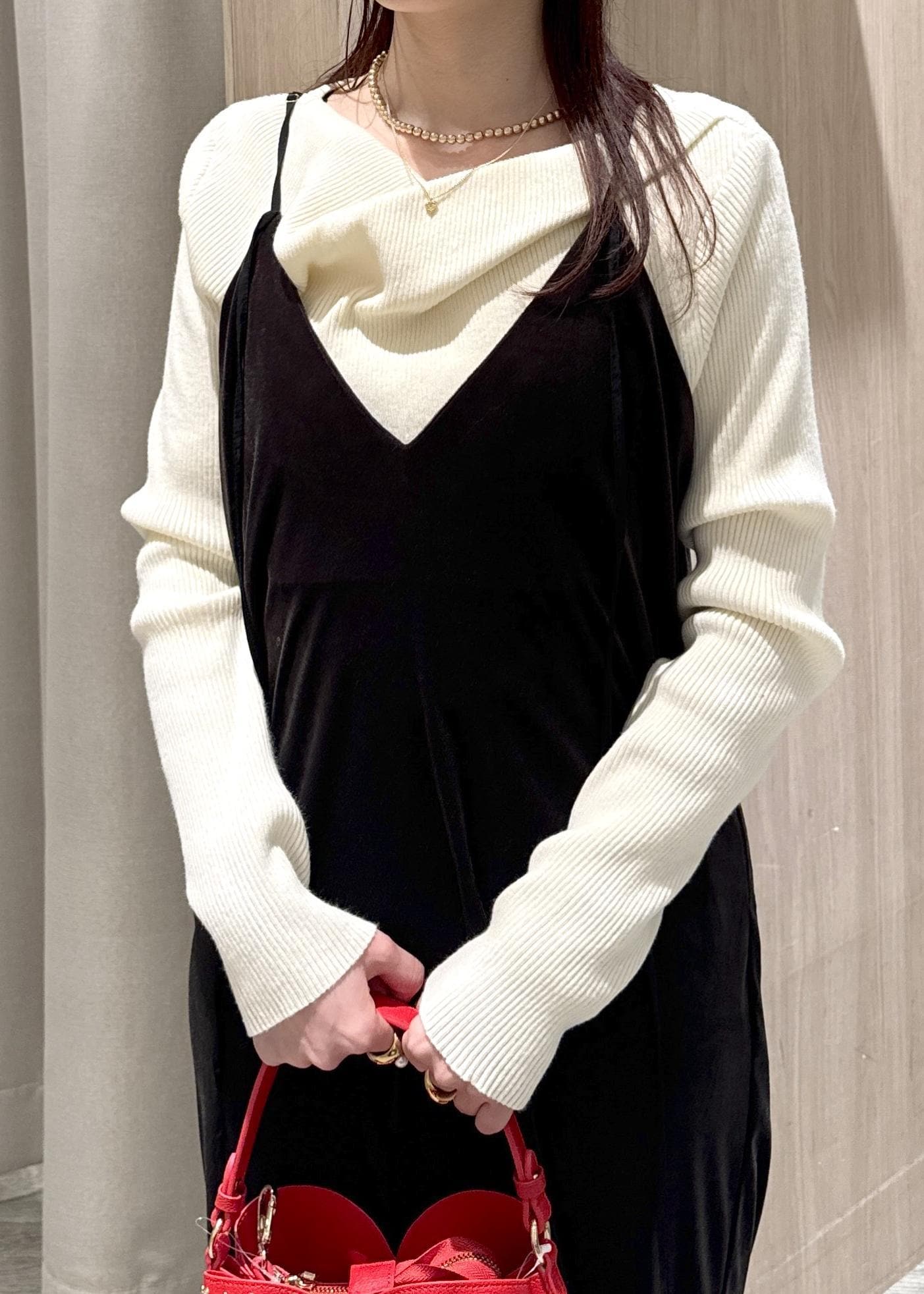 NEW!VIS【美得】もちもちドレープリブニットトップス/イージーケアオフホワイト / F¥4,389レビュー身長157cm / Fサイズ着用