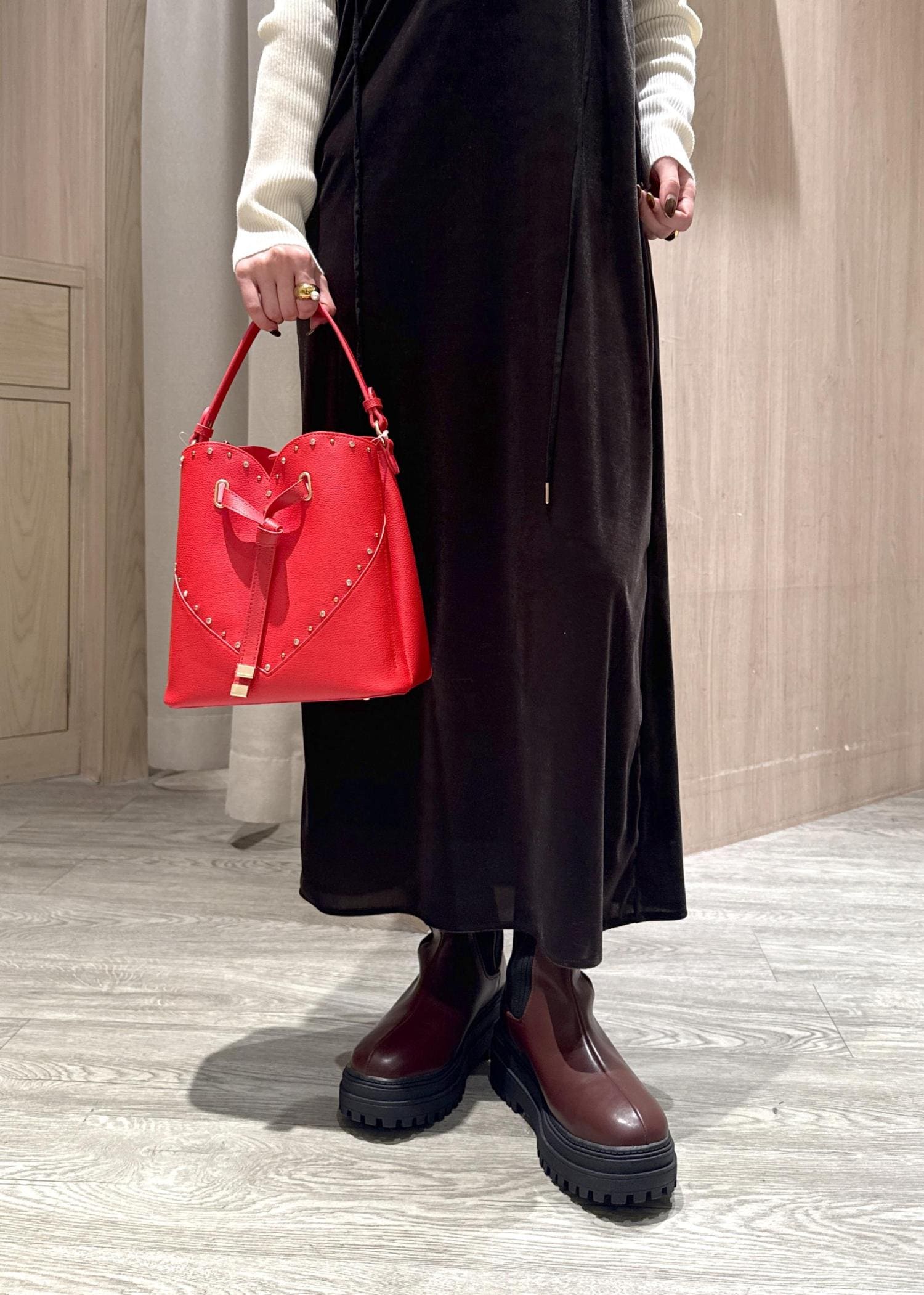 VISラインストーン&スタッズハートカットバッグレッド / F¥7,909レビュー大人気ハートカットバックの冬の限定デザインです!♡ラインストーンとスタッズが冬のコーディネートを華やかにしてくれます✨